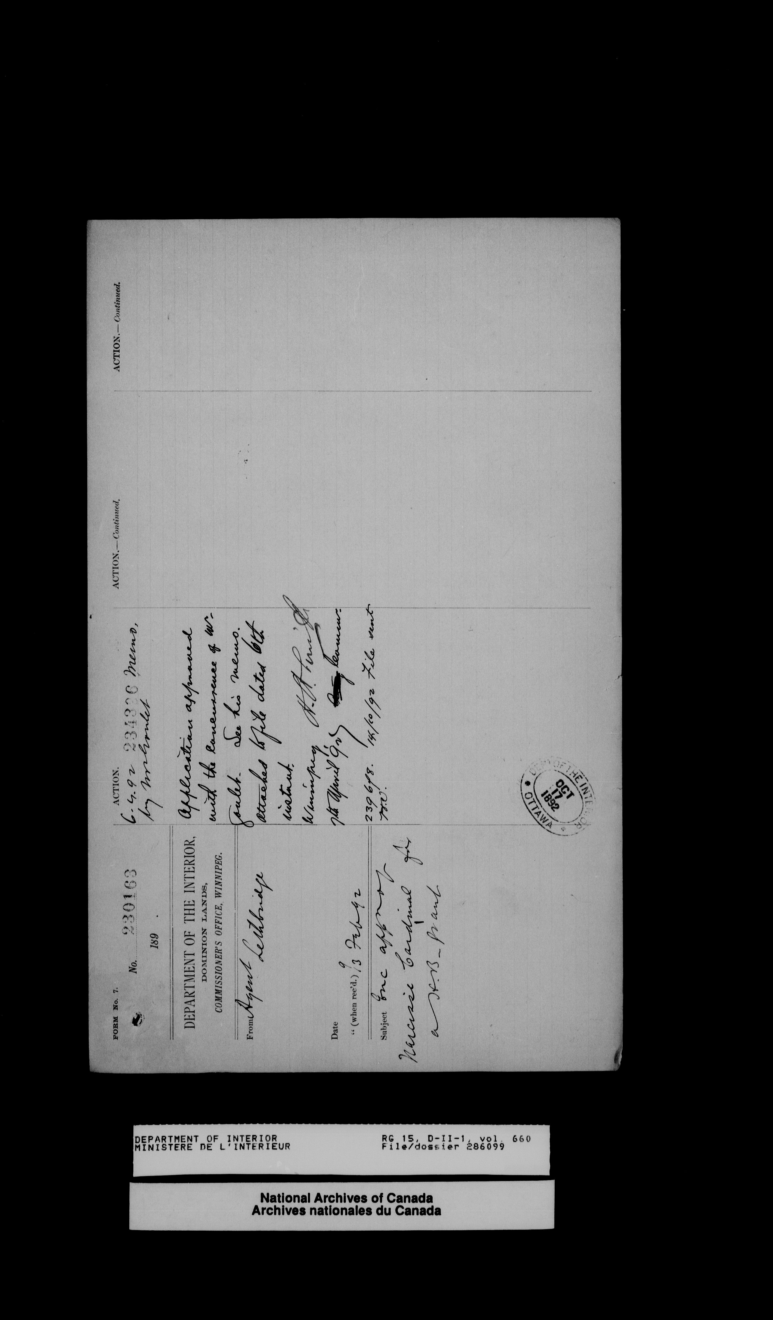 Central registry subject files created by the Dominion Lands Branch - 14408