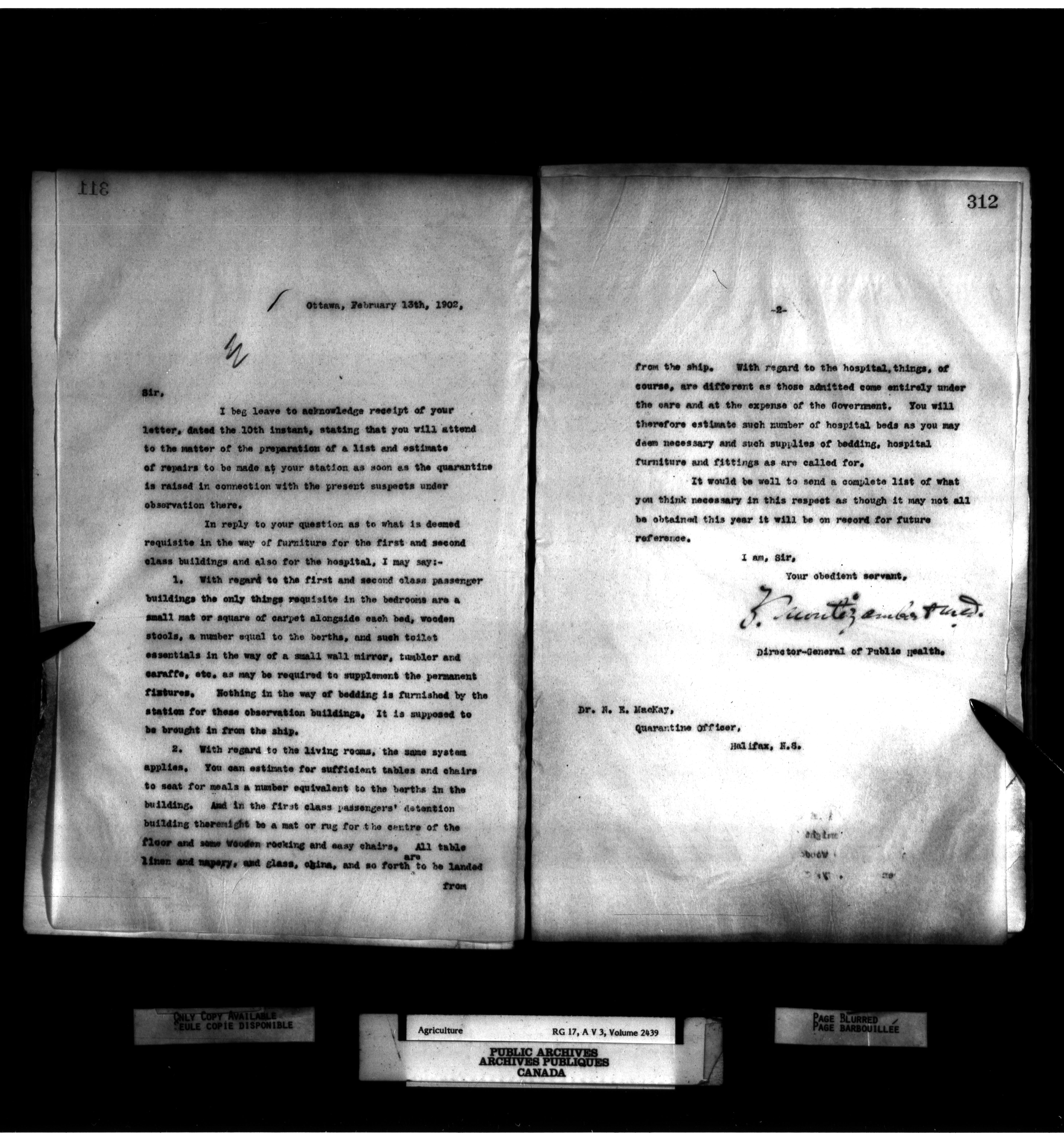 Department of Agriculture : Office of the Director General of Public Health, 1889-1912 : T-1441