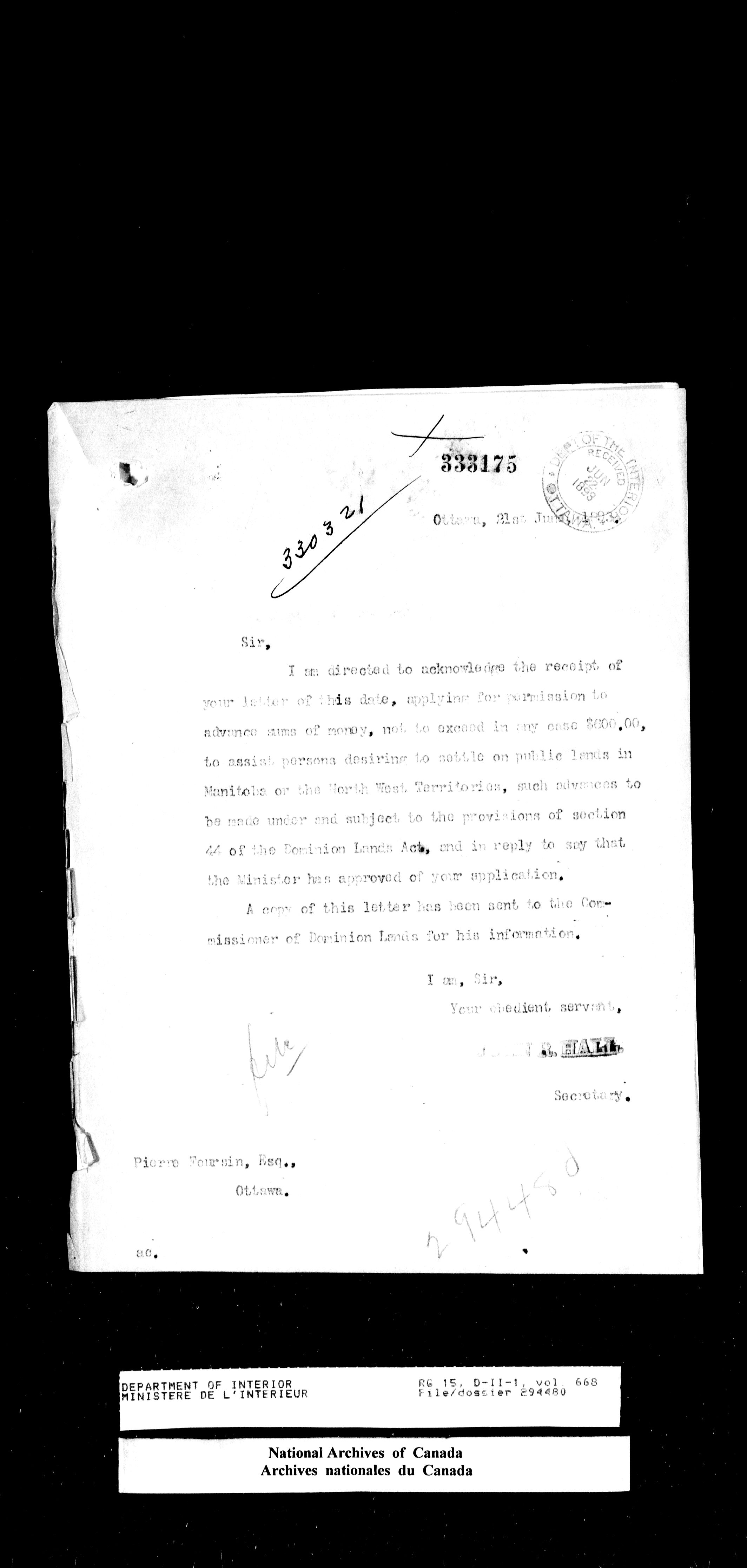 Central registry subject files created by the Dominion Lands Branch - 14416