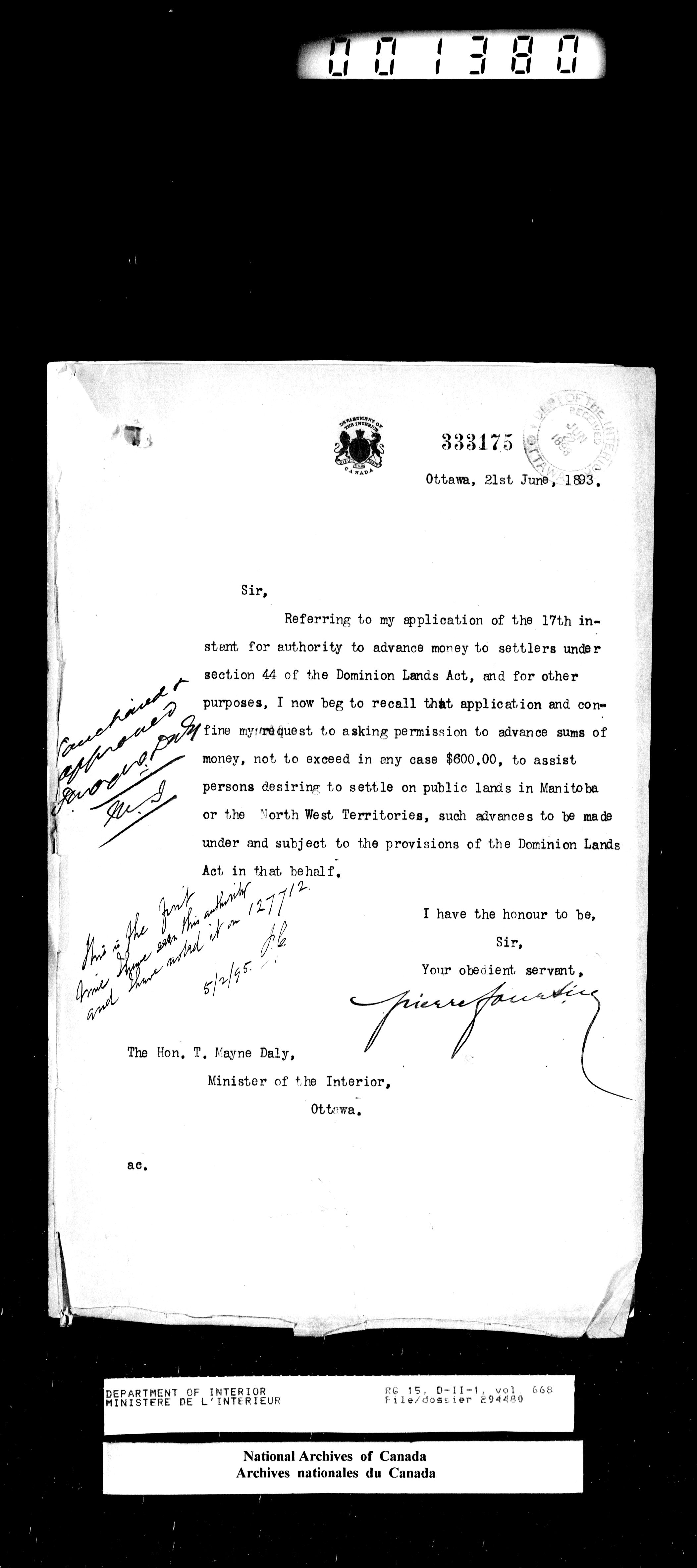 Central registry subject files created by the Dominion Lands Branch - 14416