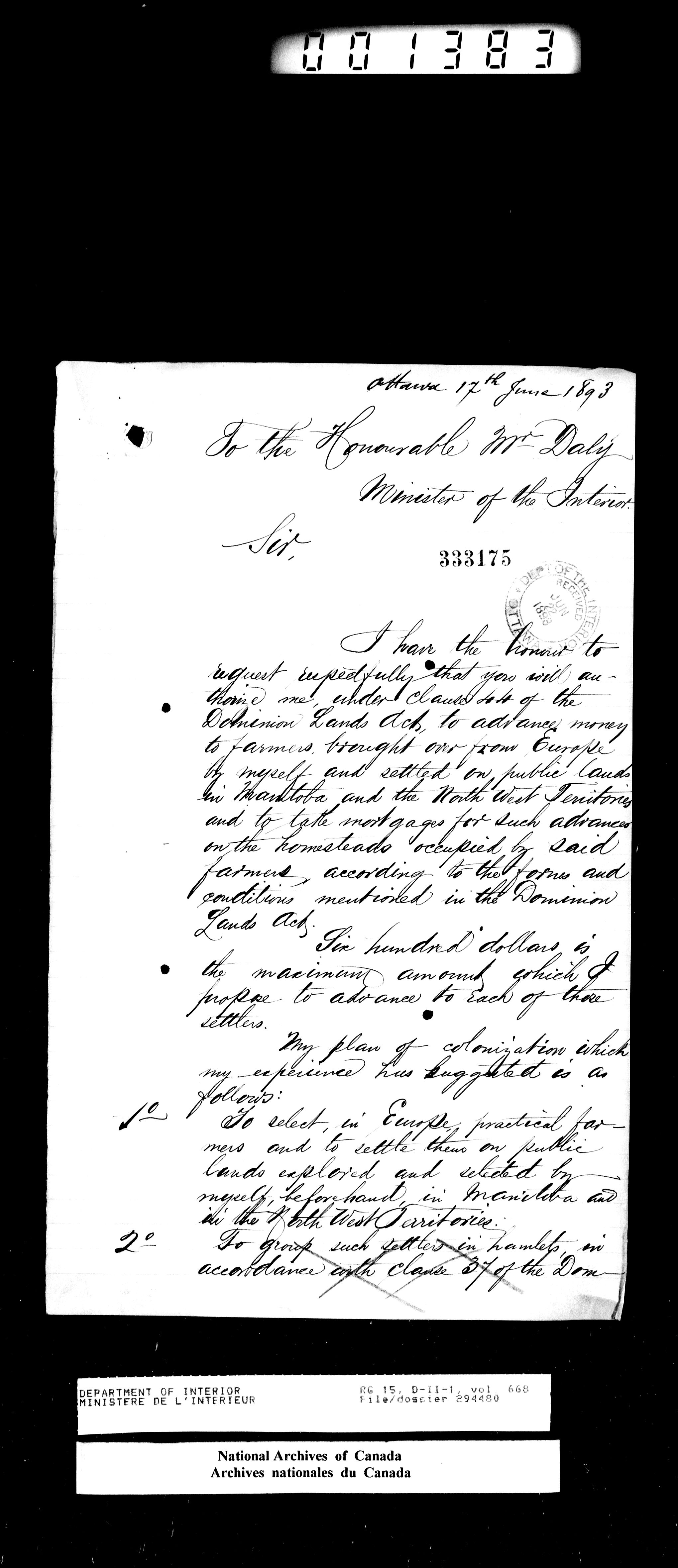 Central registry subject files created by the Dominion Lands Branch - 14416