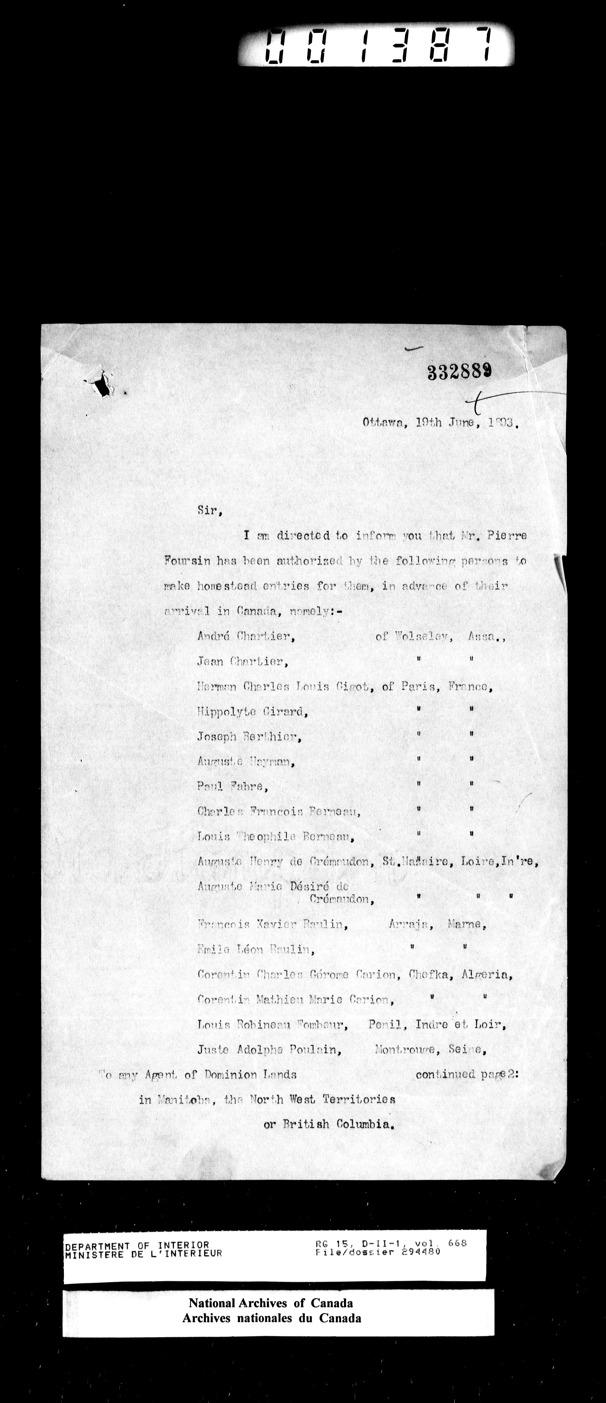 Central registry subject files created by the Dominion Lands Branch - 14416