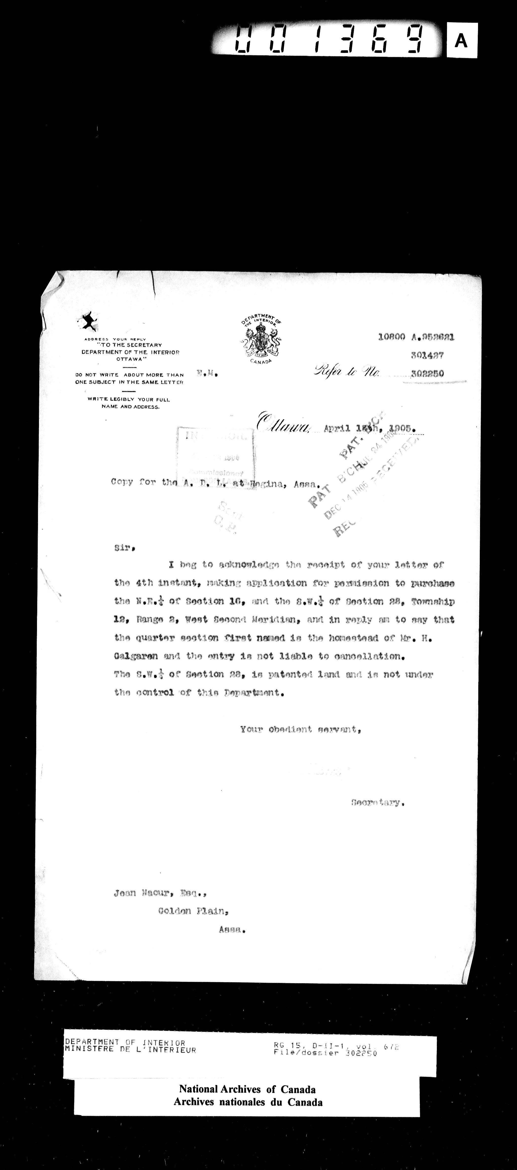 Central registry subject files created by the Dominion Lands Branch - 14420