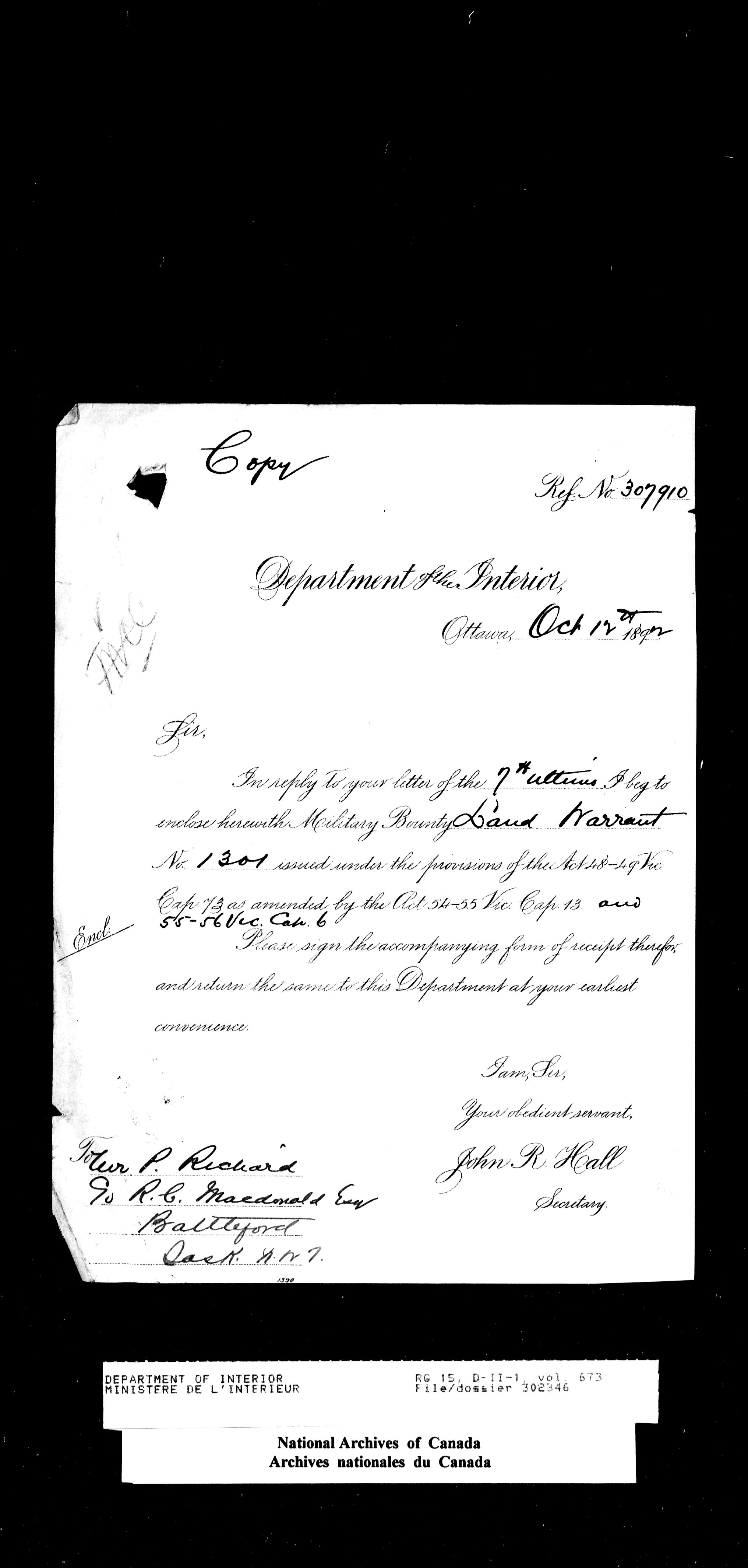 Central registry subject files created by the Dominion Lands Branch - 14421