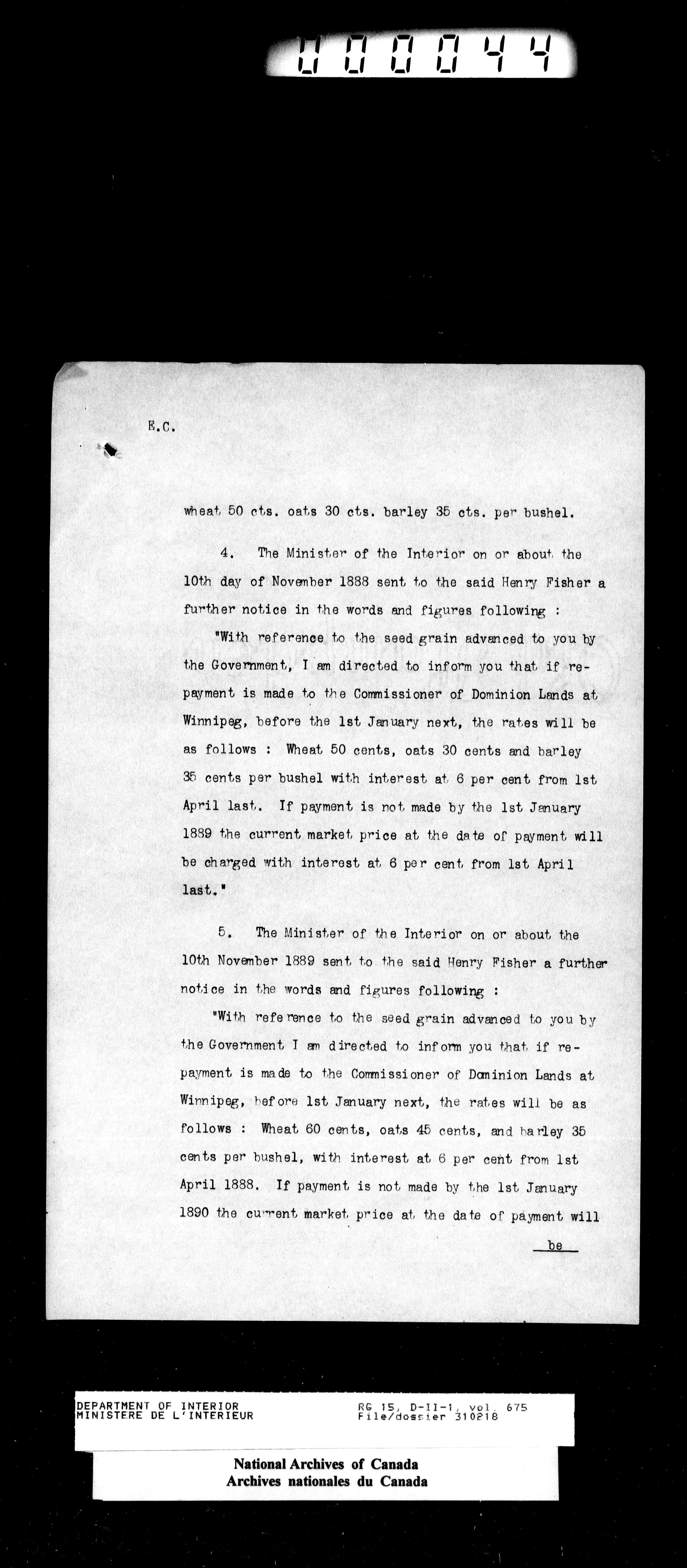 Central registry subject files created by the Dominion Lands Branch - 14423