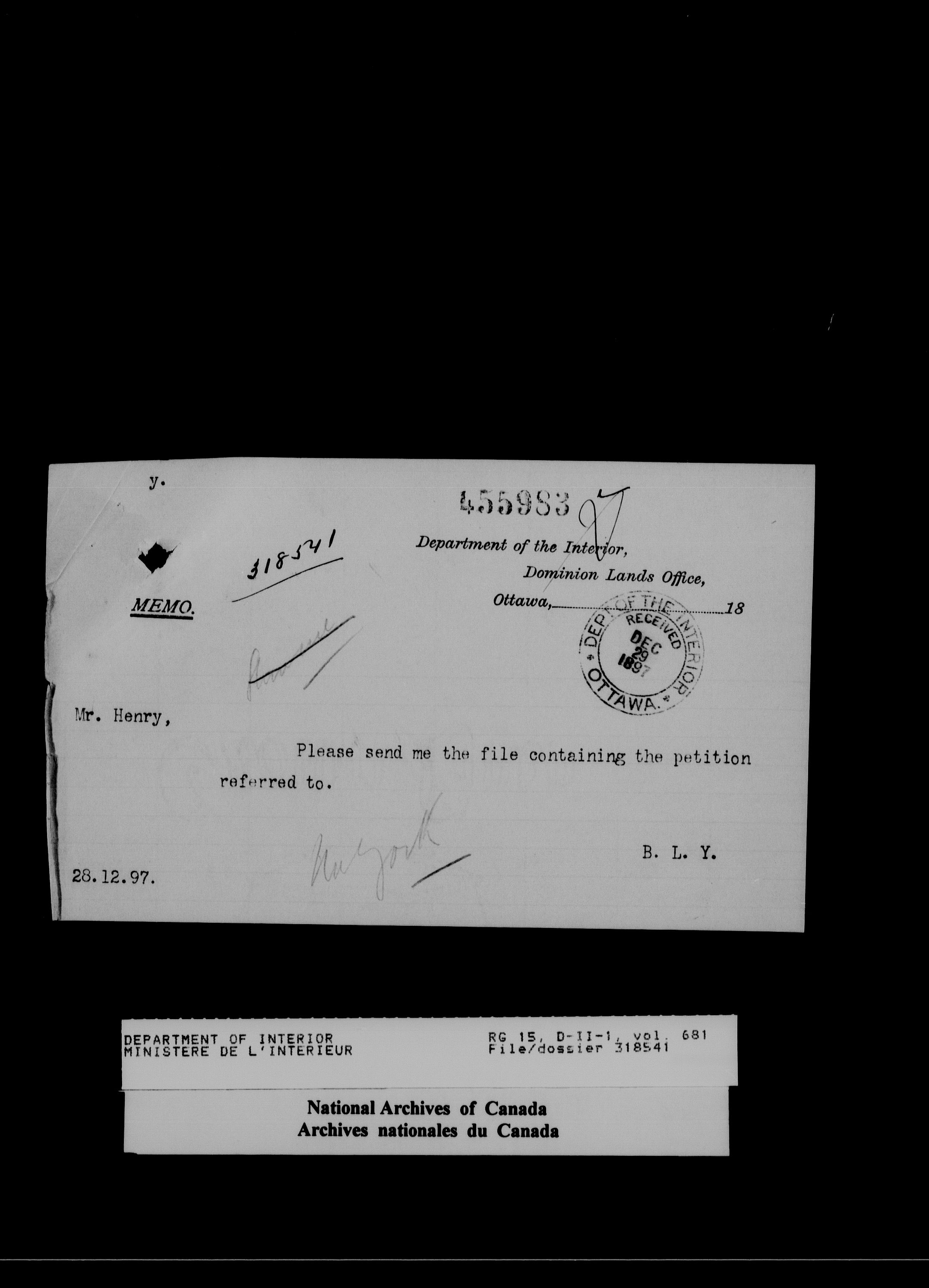 Central registry subject files created by the Dominion Lands Branch - 14428