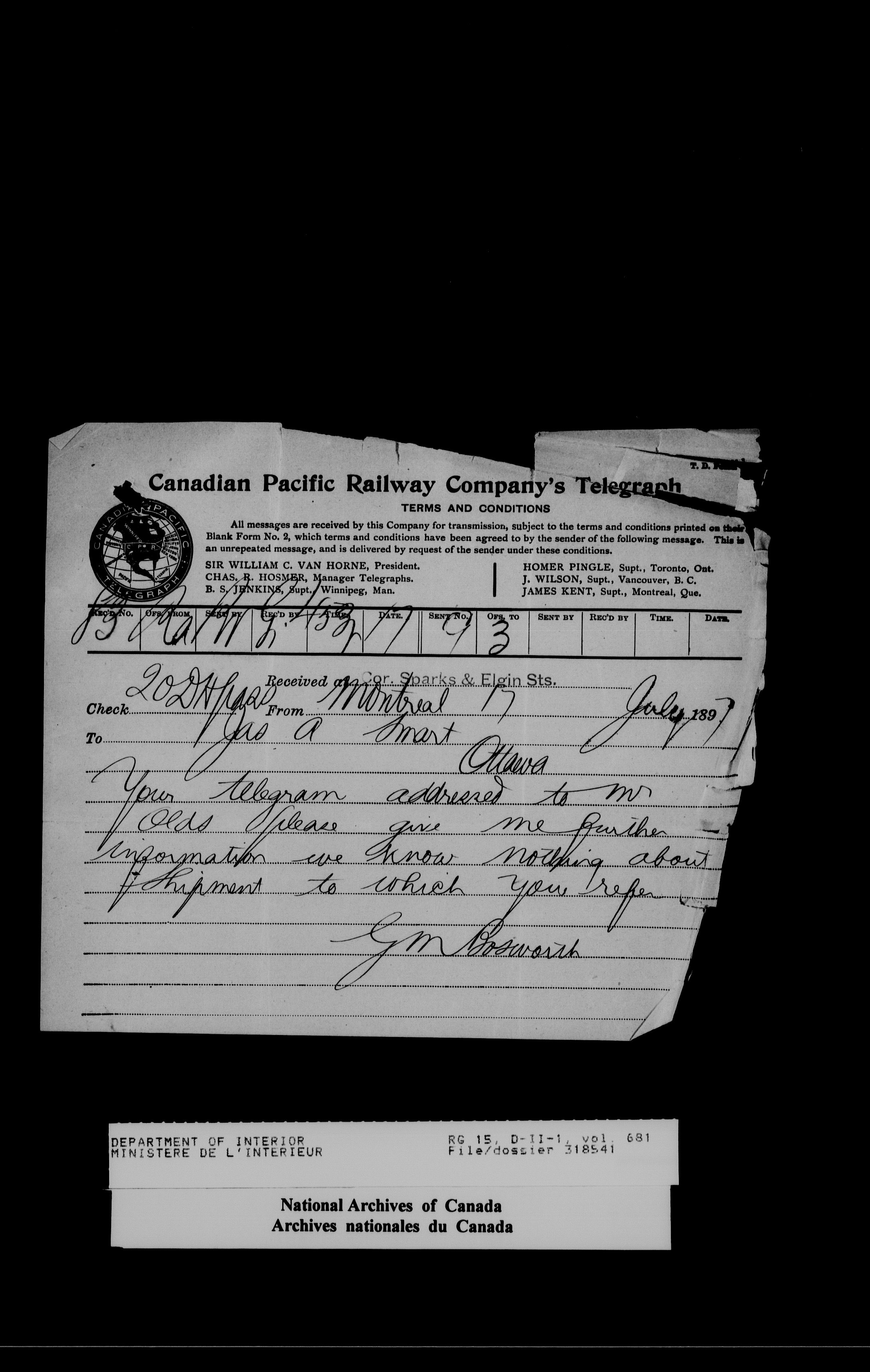 Central registry subject files created by the Dominion Lands Branch - 14428