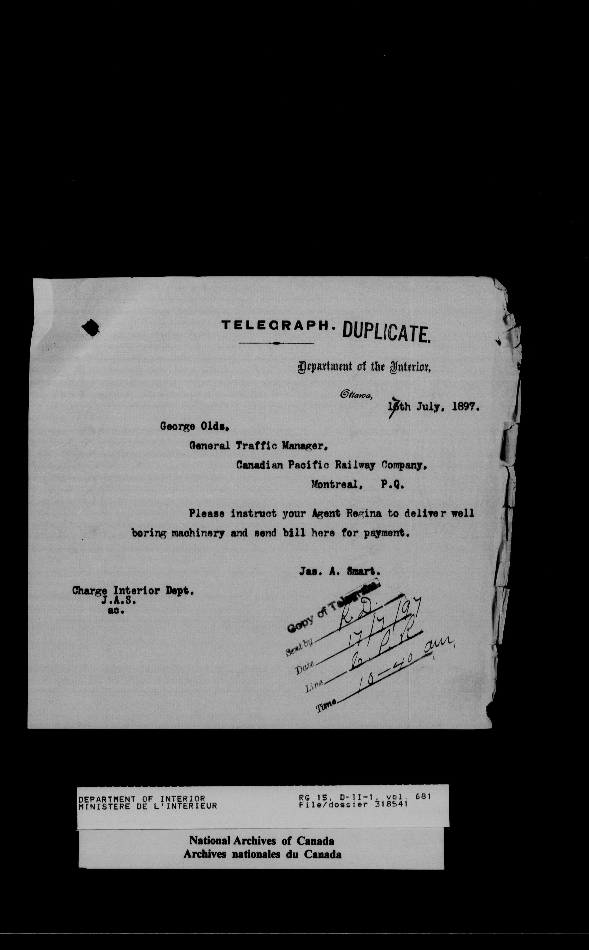Central registry subject files created by the Dominion Lands Branch - 14428