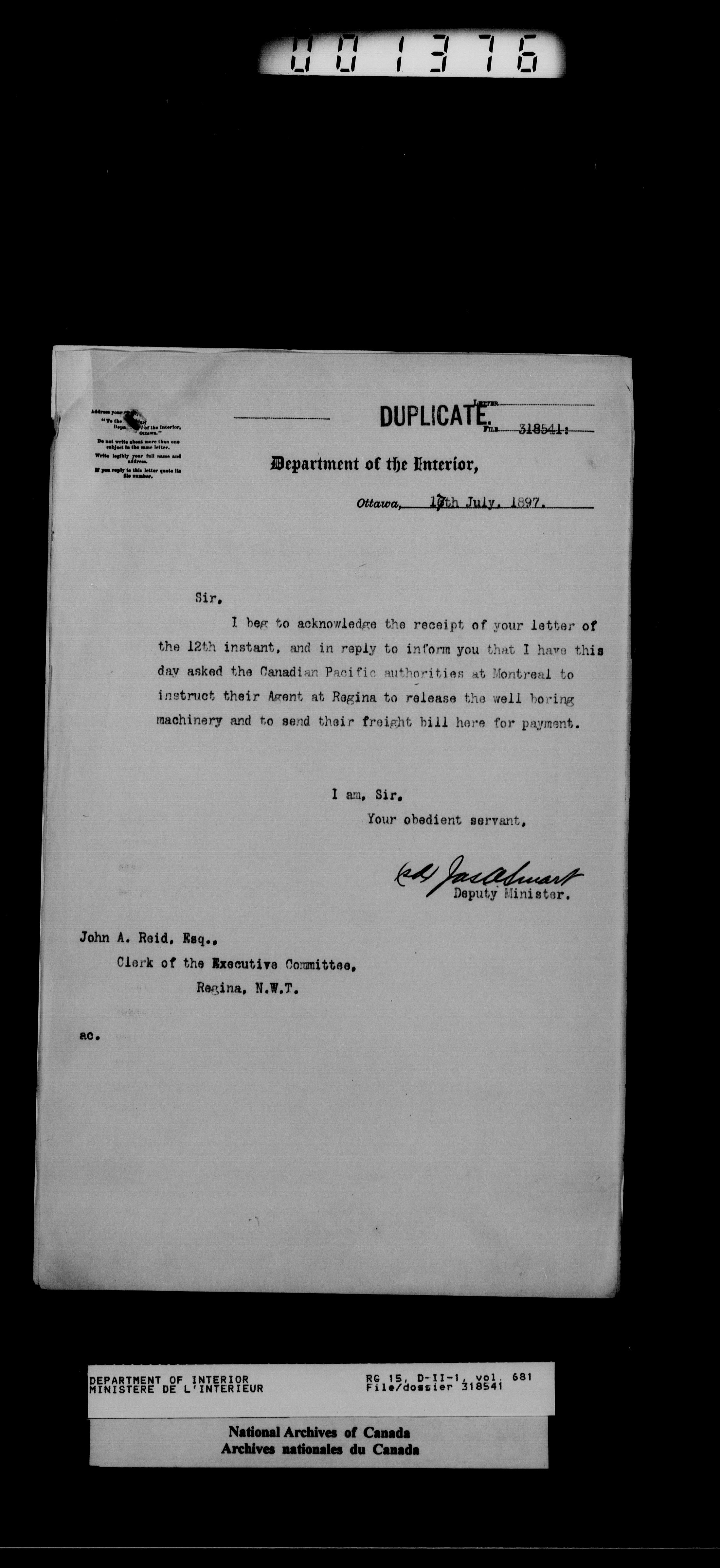 Central registry subject files created by the Dominion Lands Branch - 14428