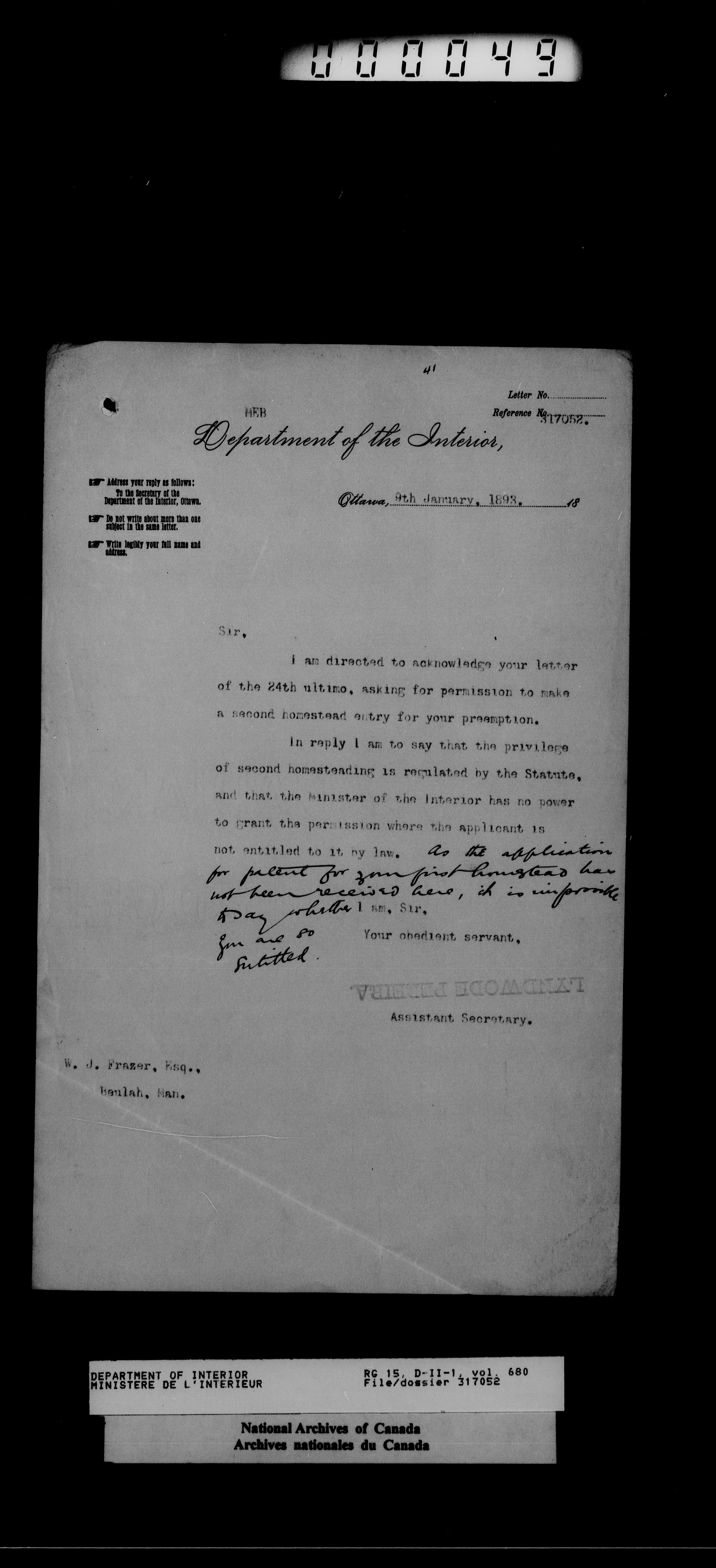 Central registry subject files created by the Dominion Lands Branch - 14428