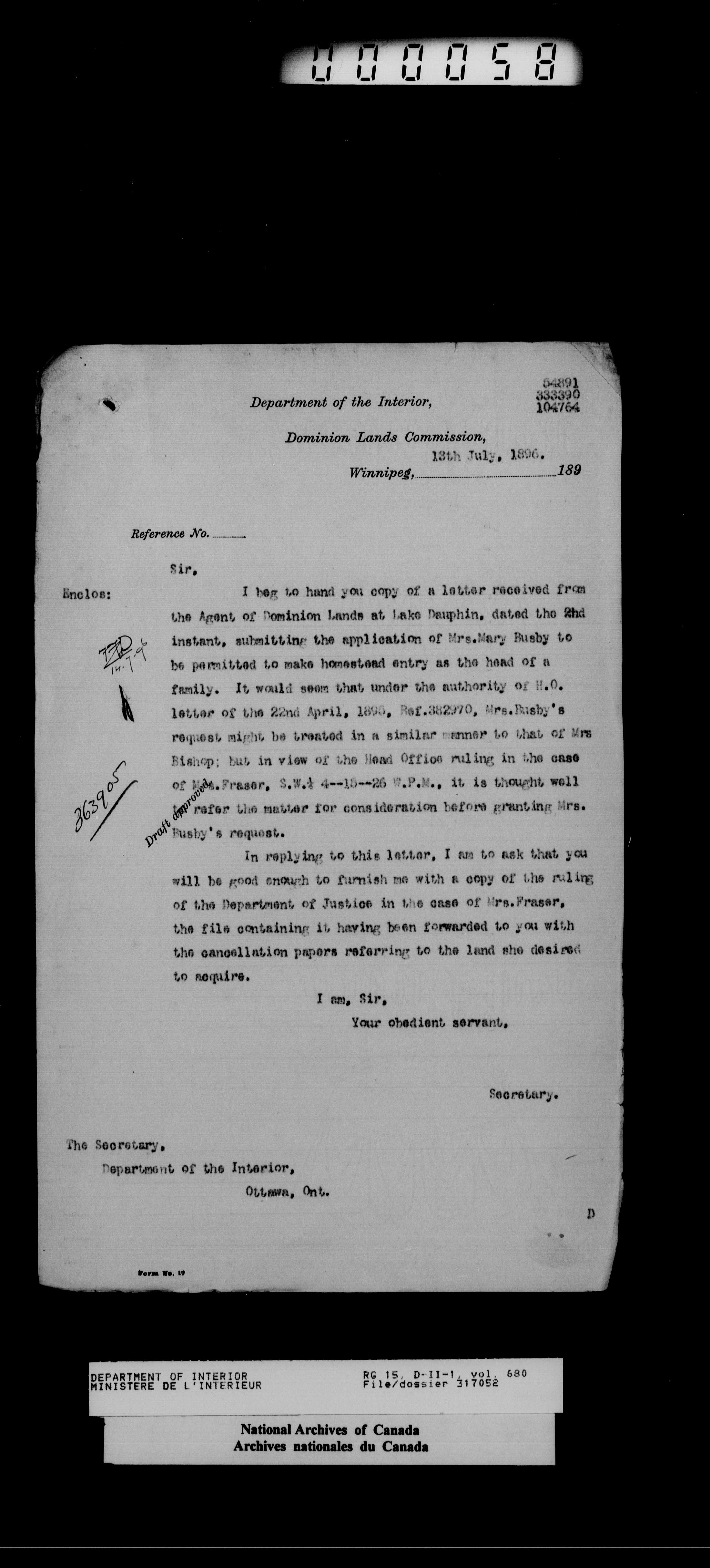 Central registry subject files created by the Dominion Lands Branch - 14428