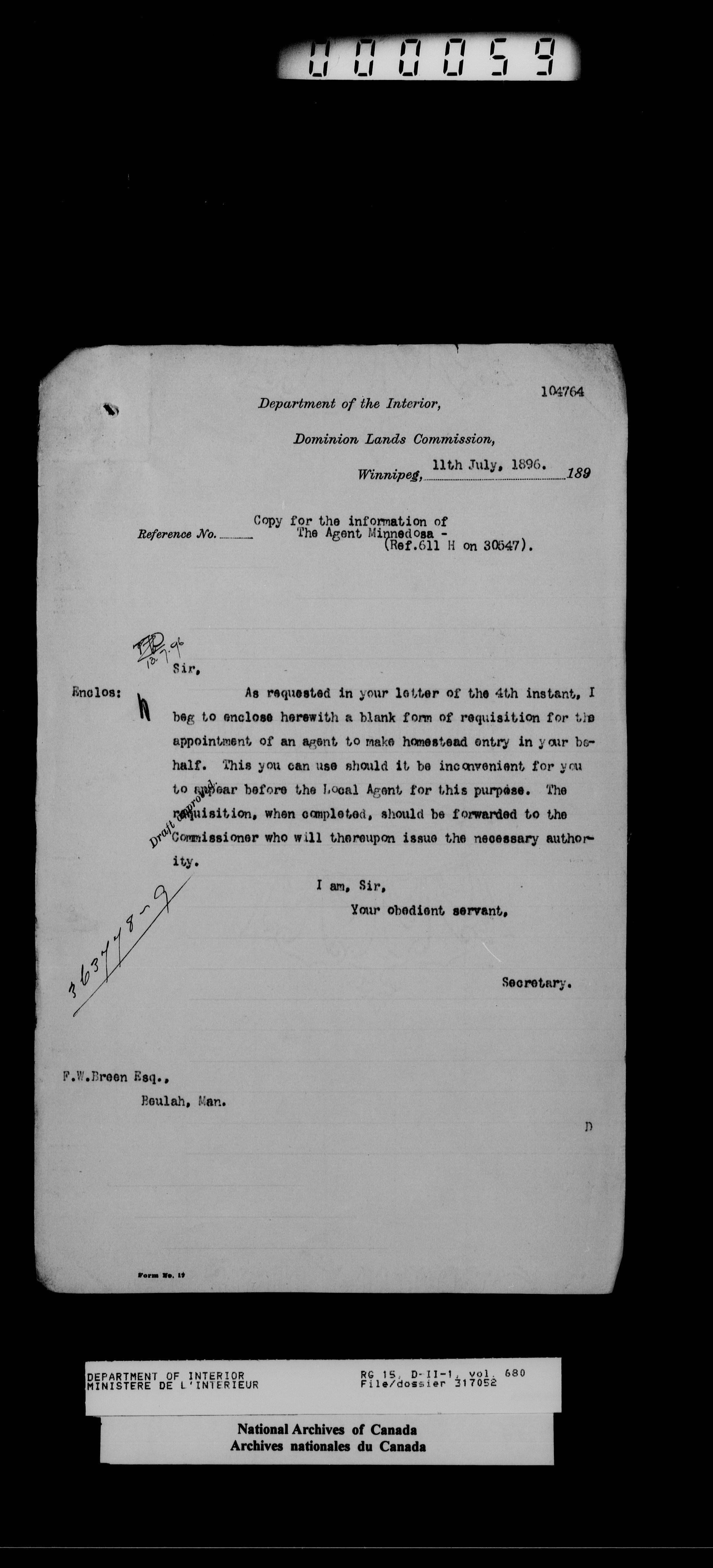 Central registry subject files created by the Dominion Lands Branch - 14428