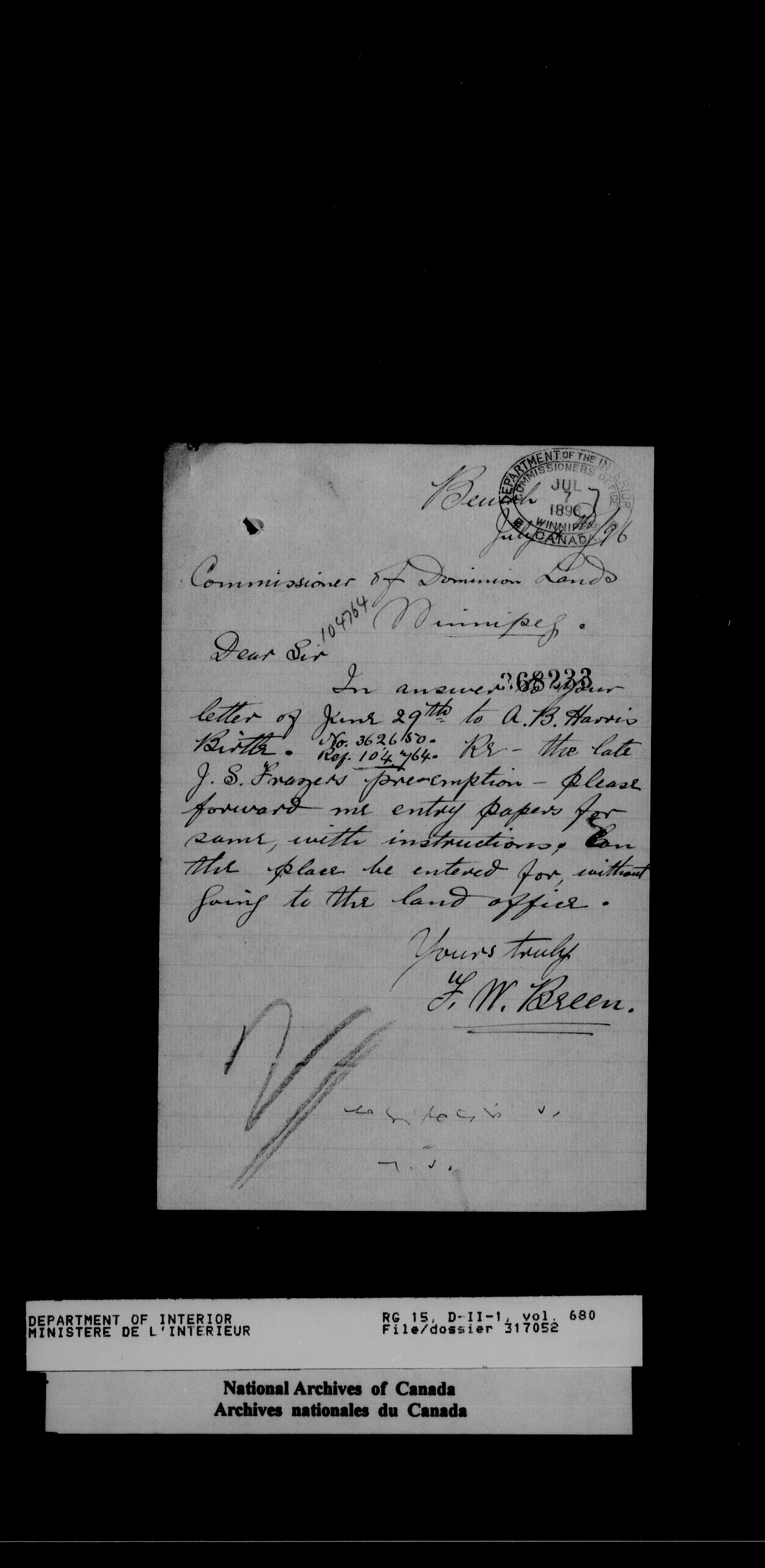Central registry subject files created by the Dominion Lands Branch - 14428