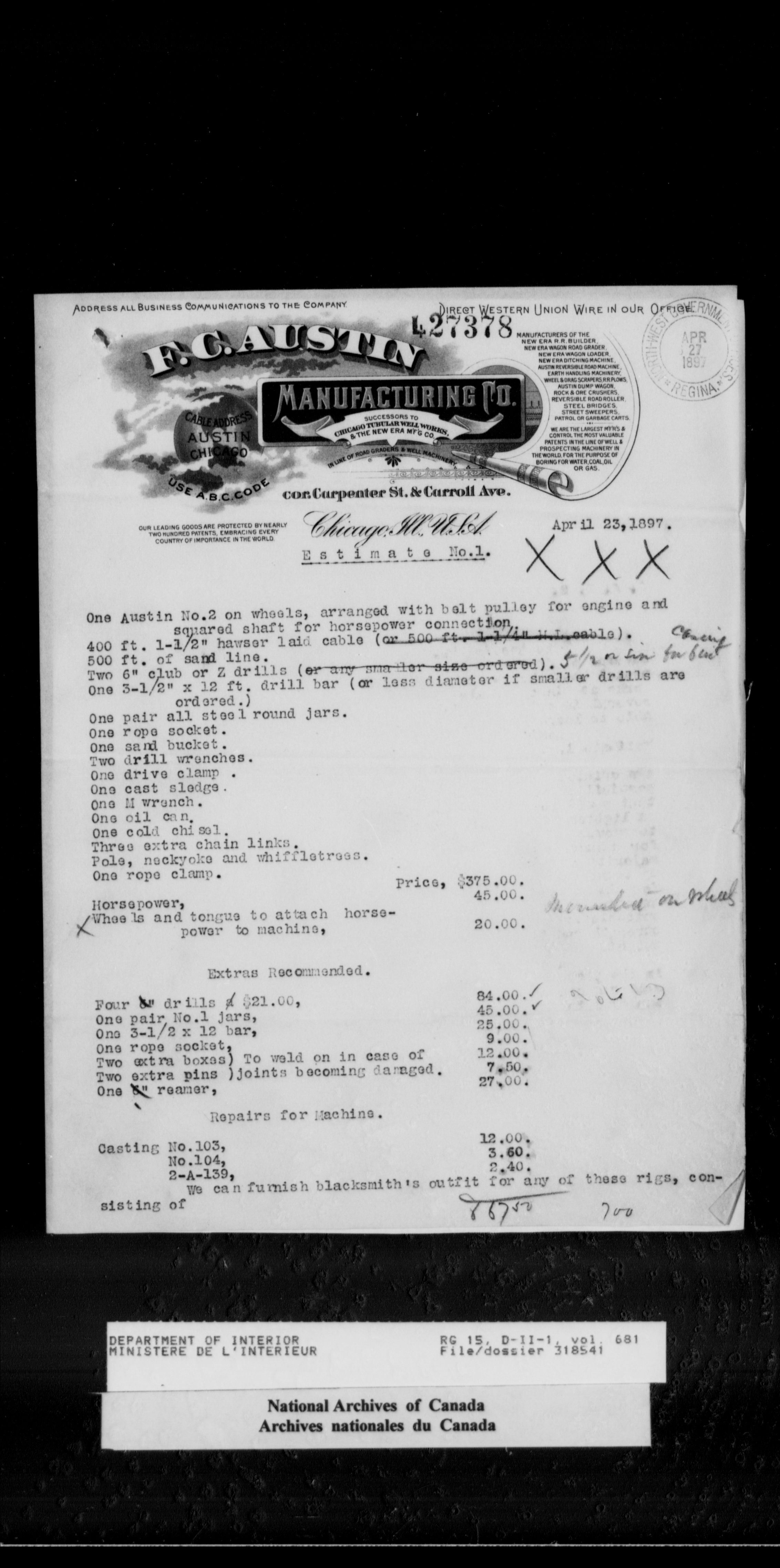 Central registry subject files created by the Dominion Lands Branch - 14429