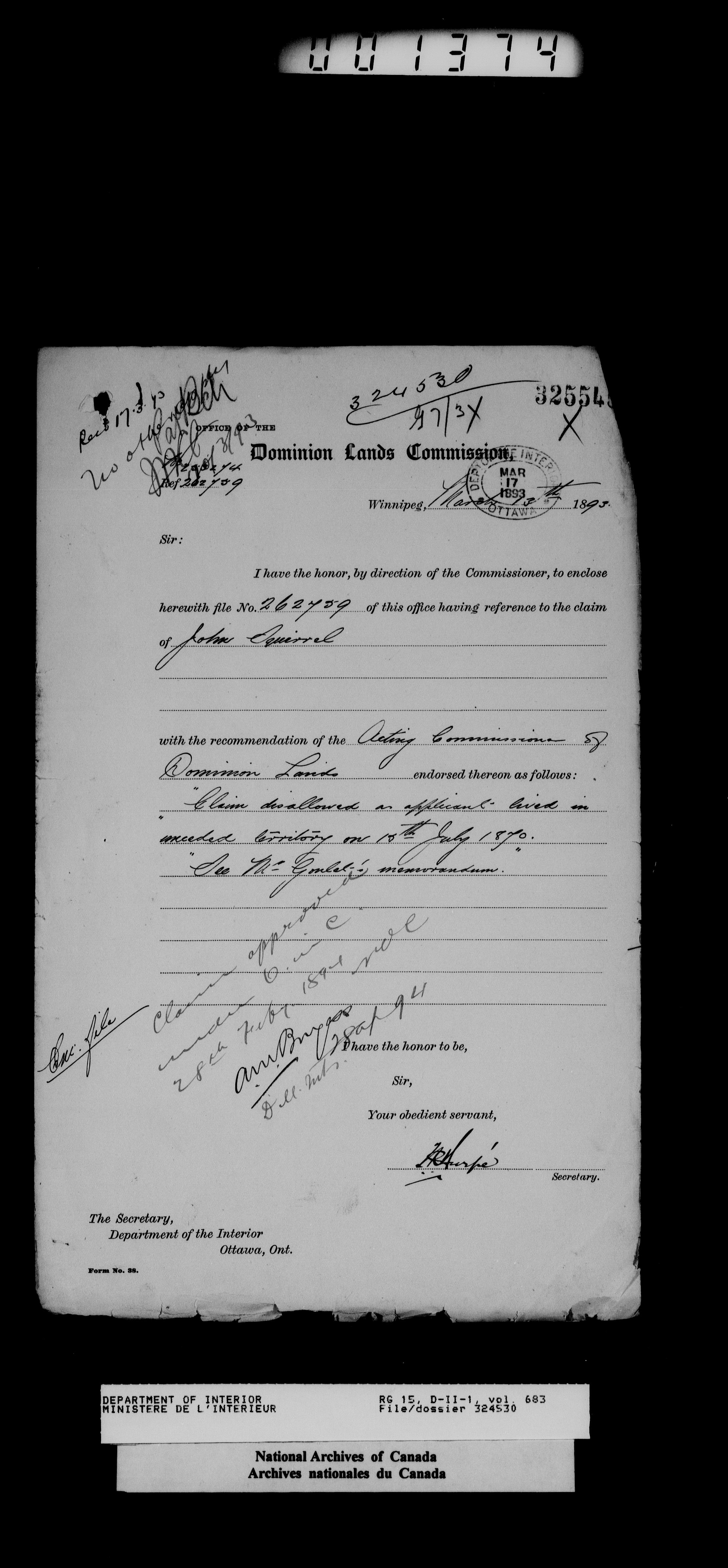 Central registry subject files created by the Dominion Lands Branch - 14430