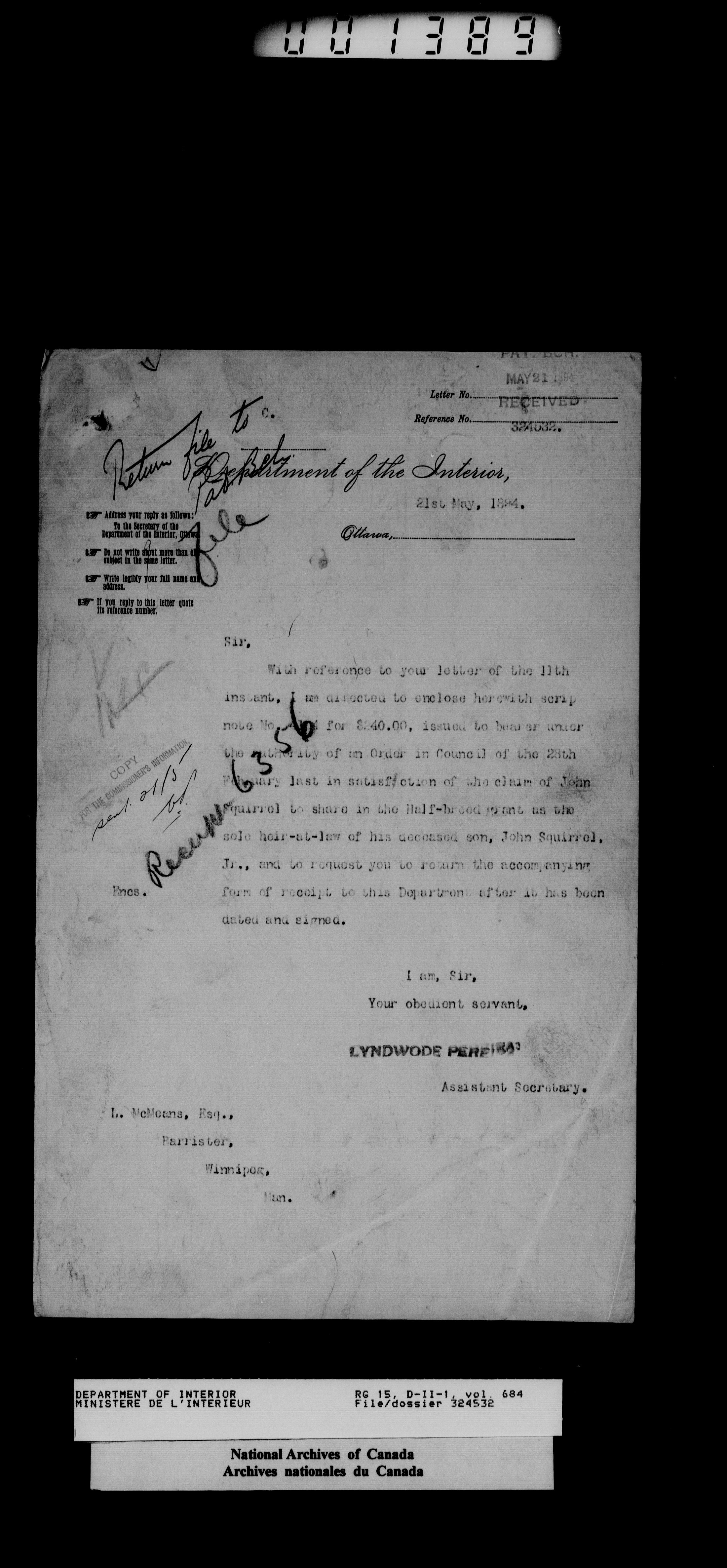 Central registry subject files created by the Dominion Lands Branch - 14430