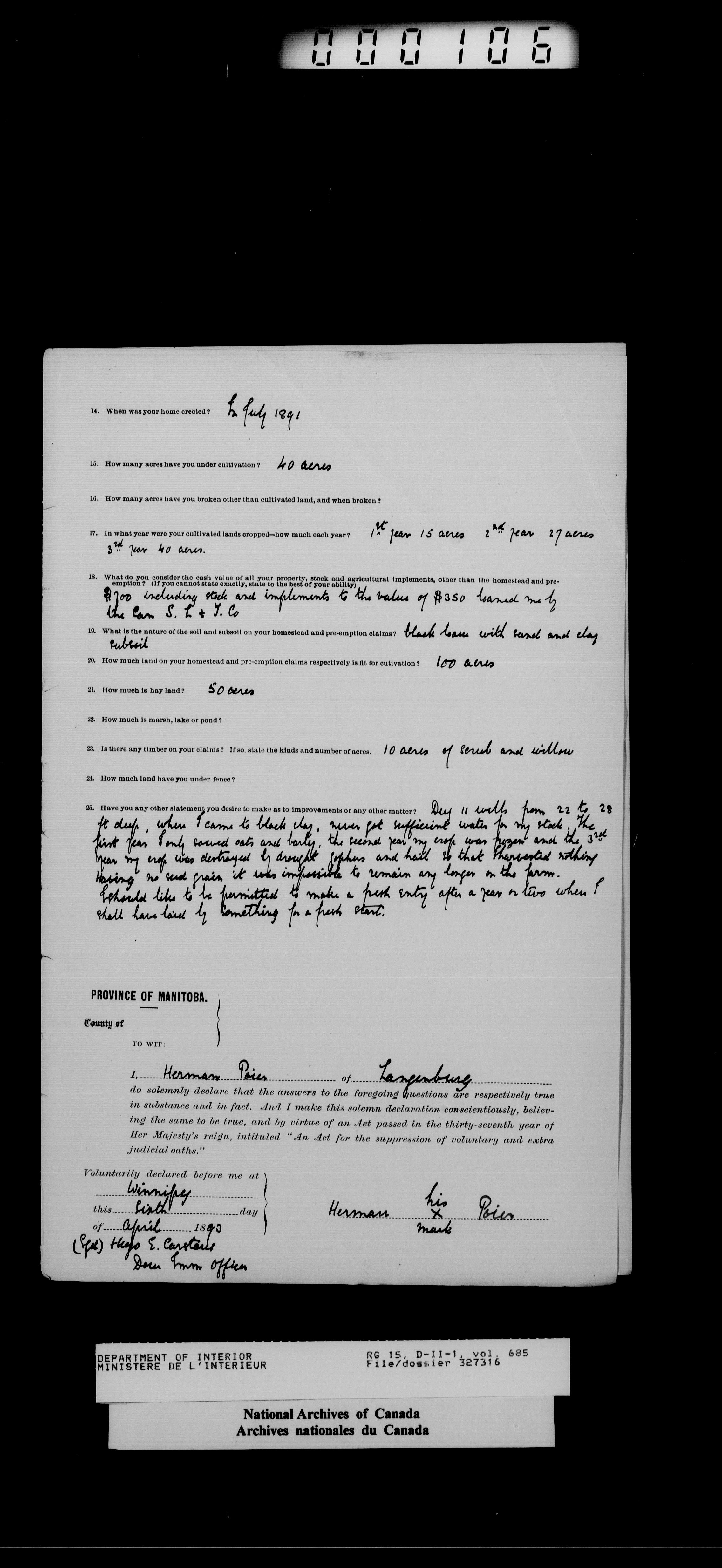 Central registry subject files created by the Dominion Lands Branch - 14432