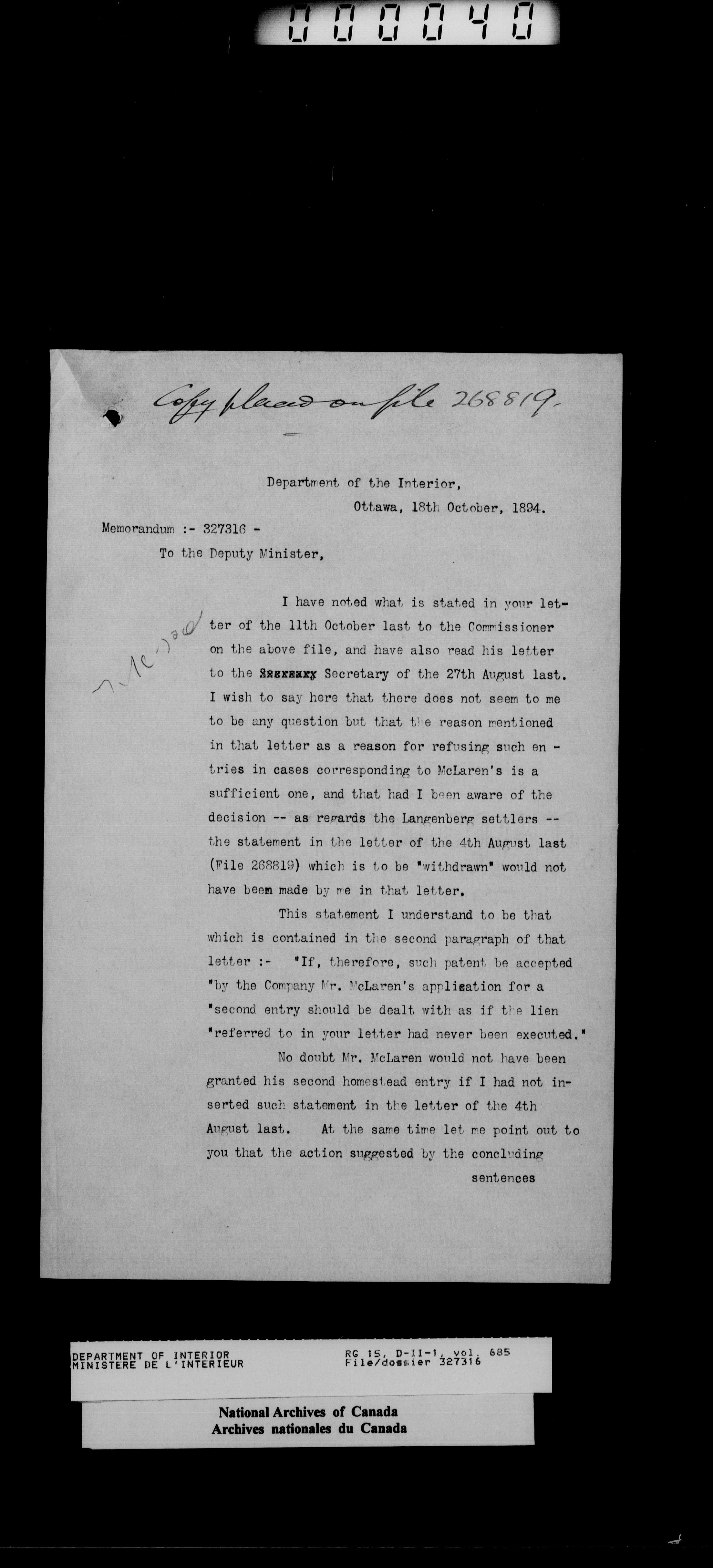 Central registry subject files created by the Dominion Lands Branch - 14432