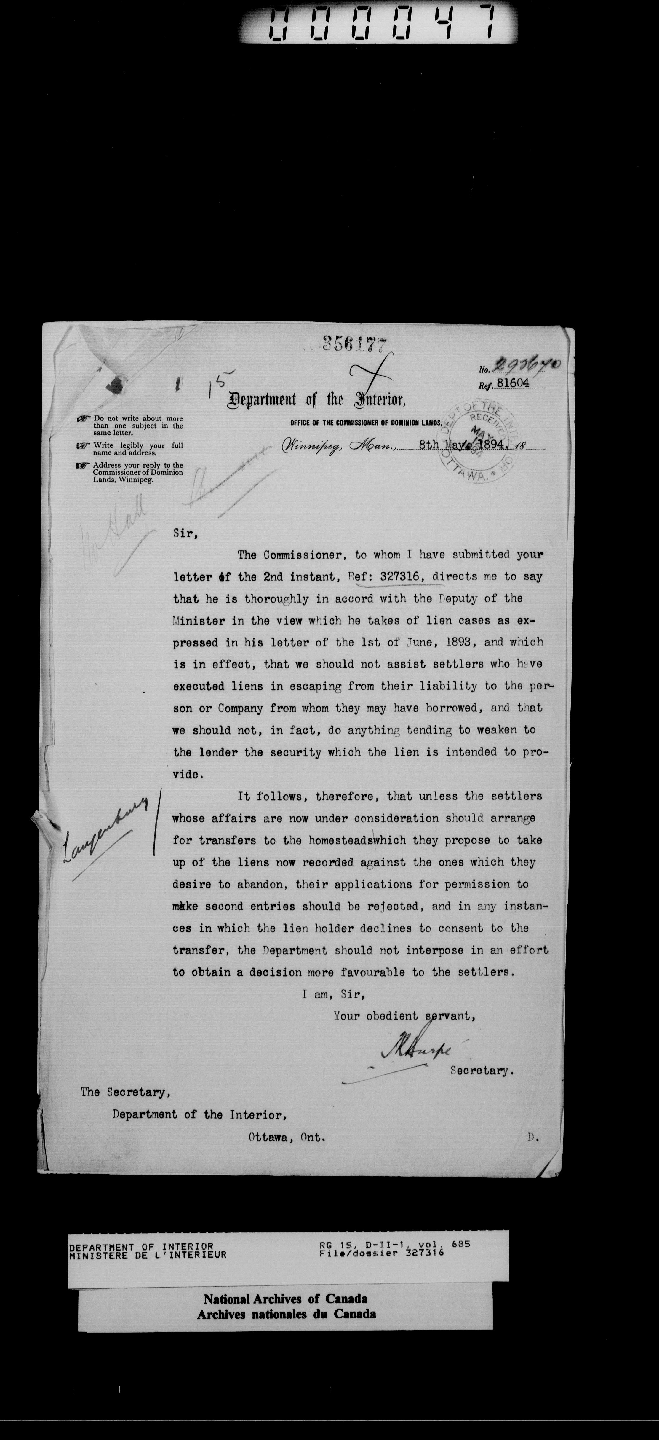 Central registry subject files created by the Dominion Lands Branch - 14432