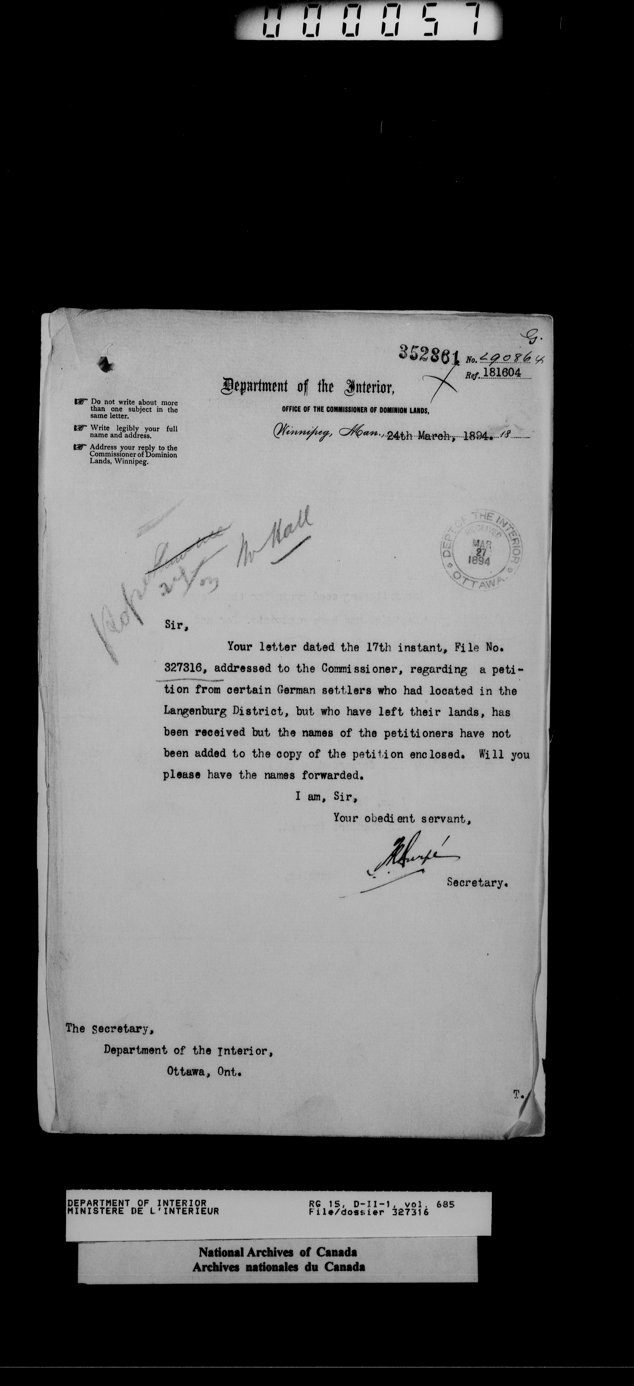 Central registry subject files created by the Dominion Lands Branch - 14432