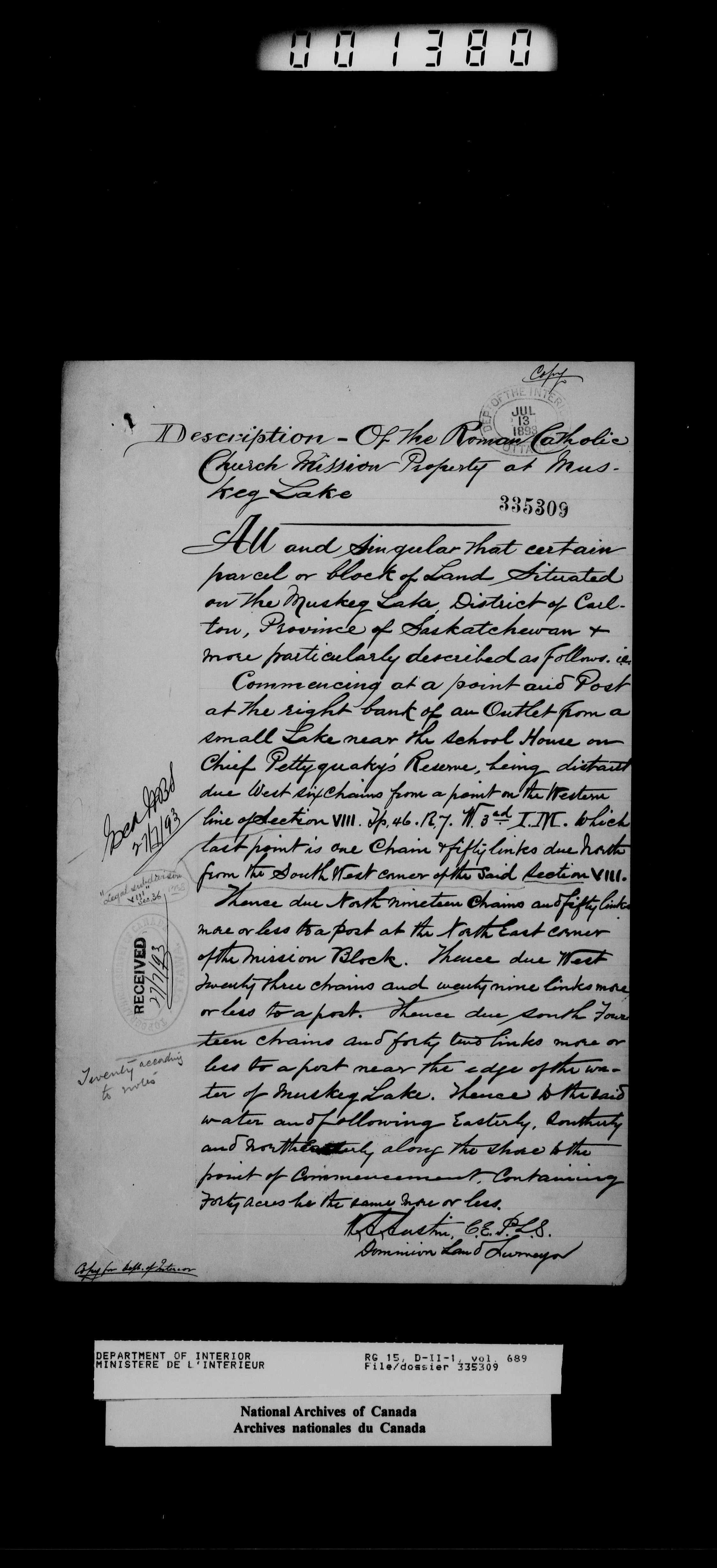 Central registry subject files created by the Dominion Lands Branch - 14436