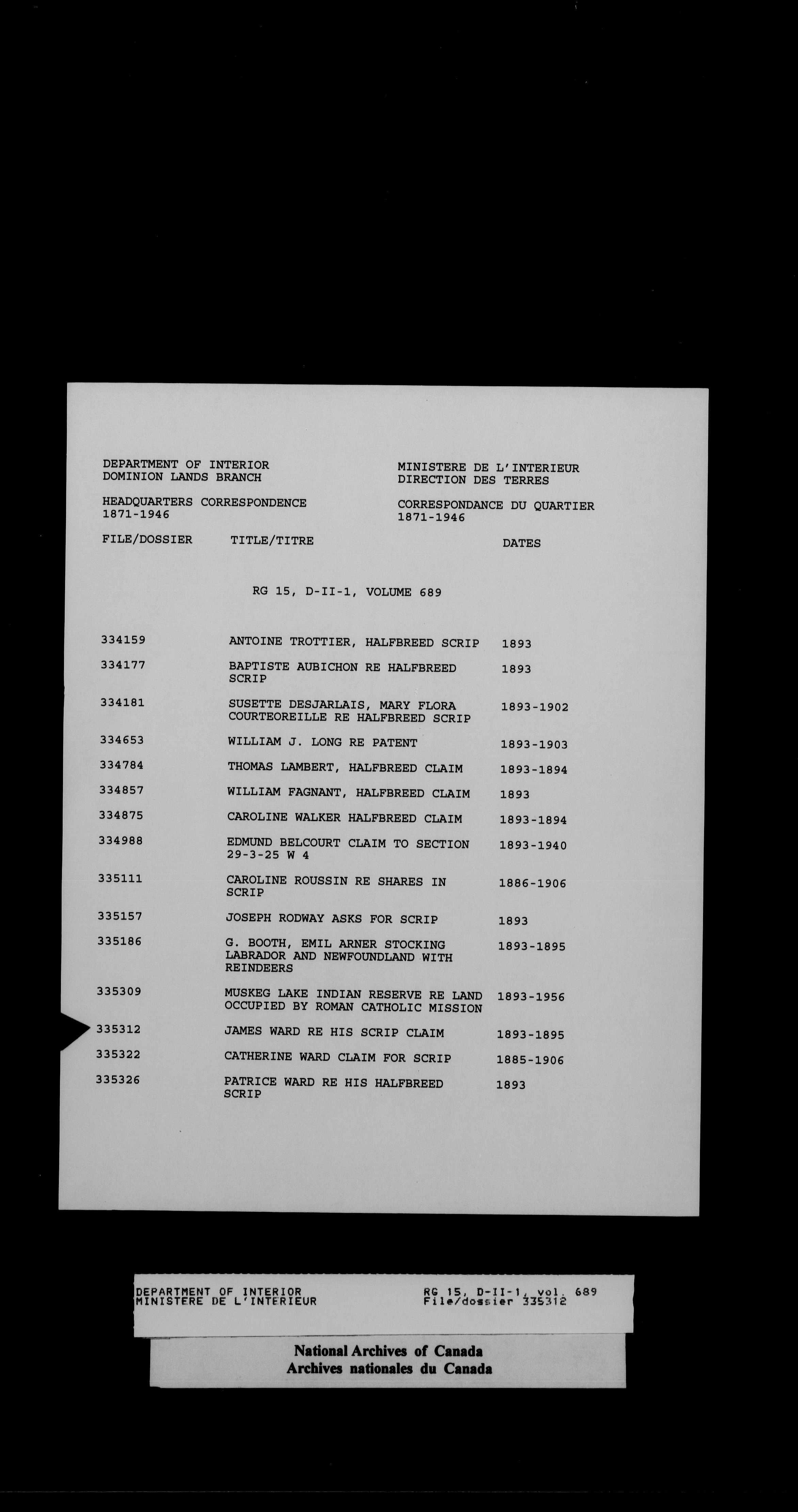 Central registry subject files created by the Dominion Lands Branch - 14436