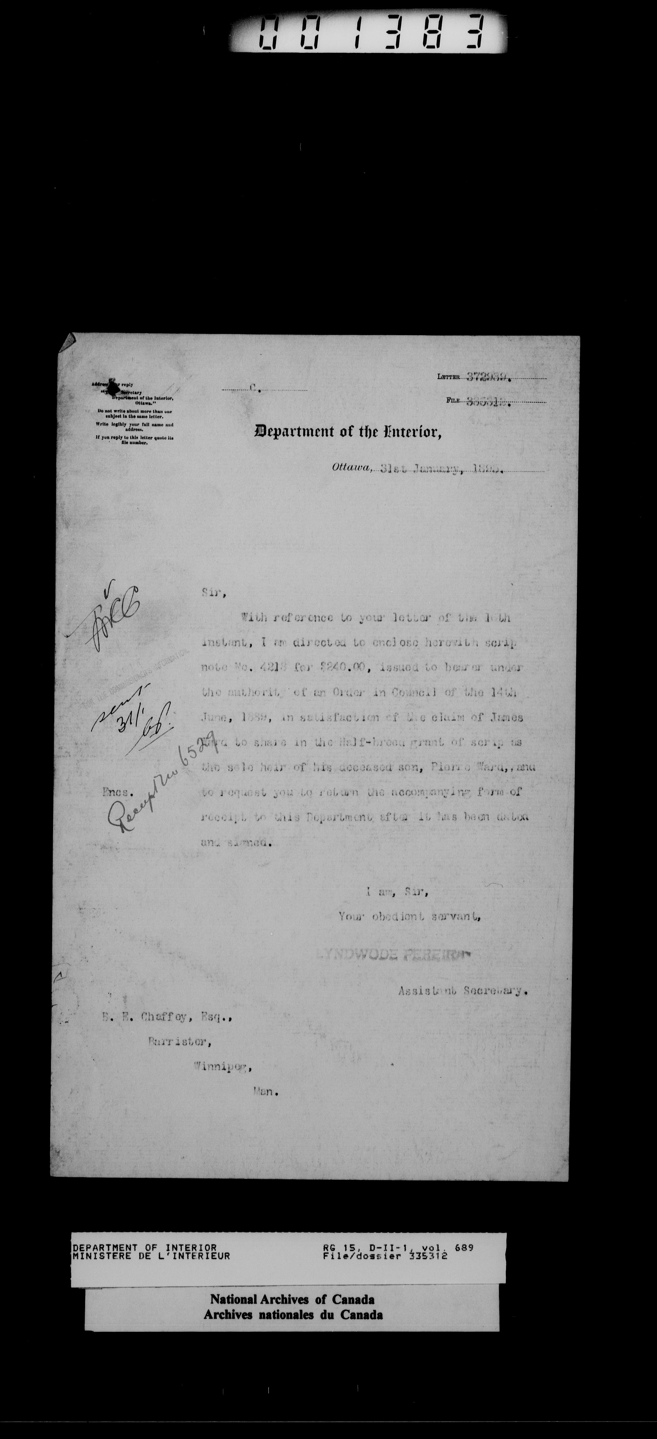 Central registry subject files created by the Dominion Lands Branch - 14436