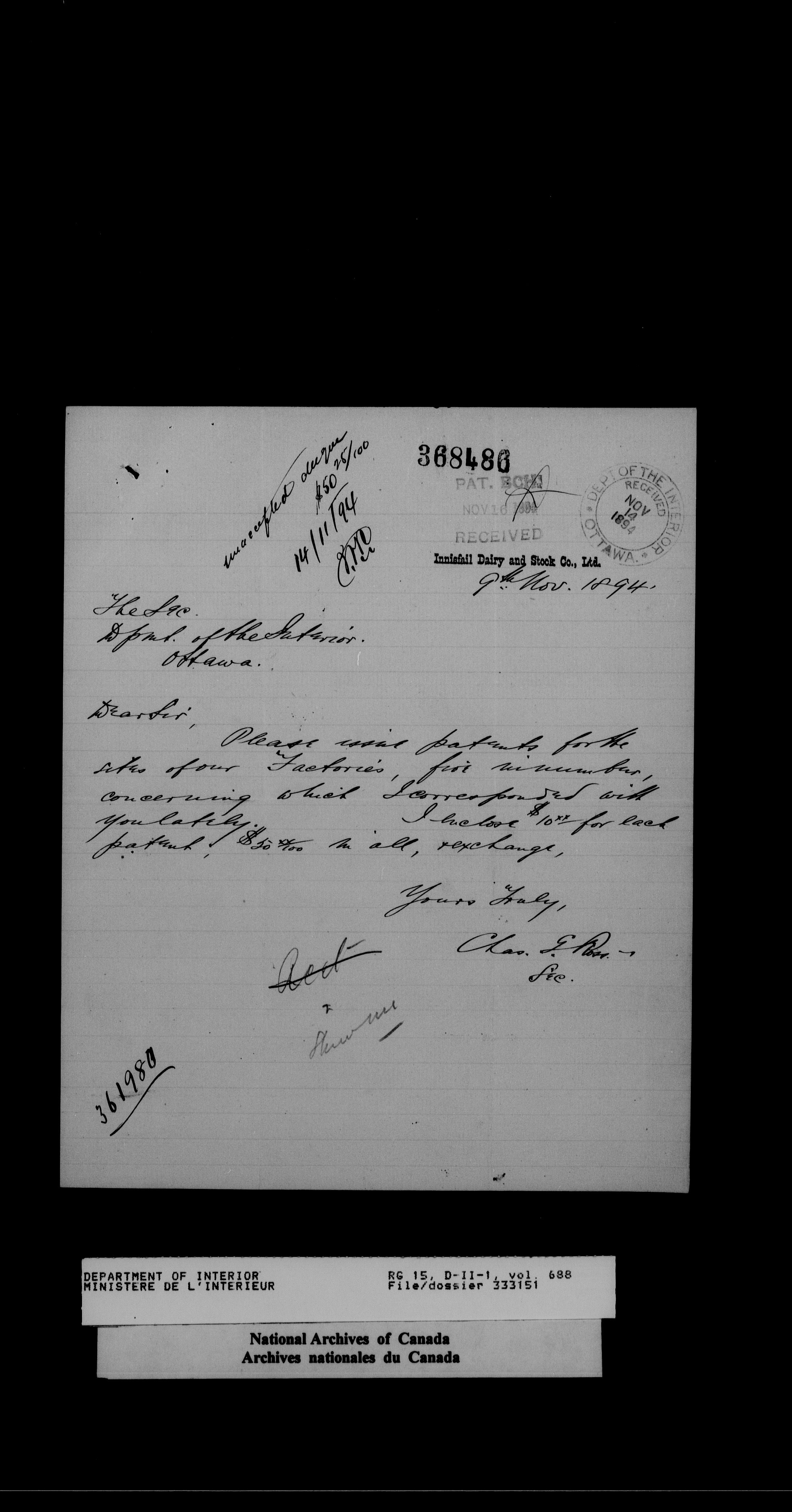 Central registry subject files created by the Dominion Lands Branch - 14436
