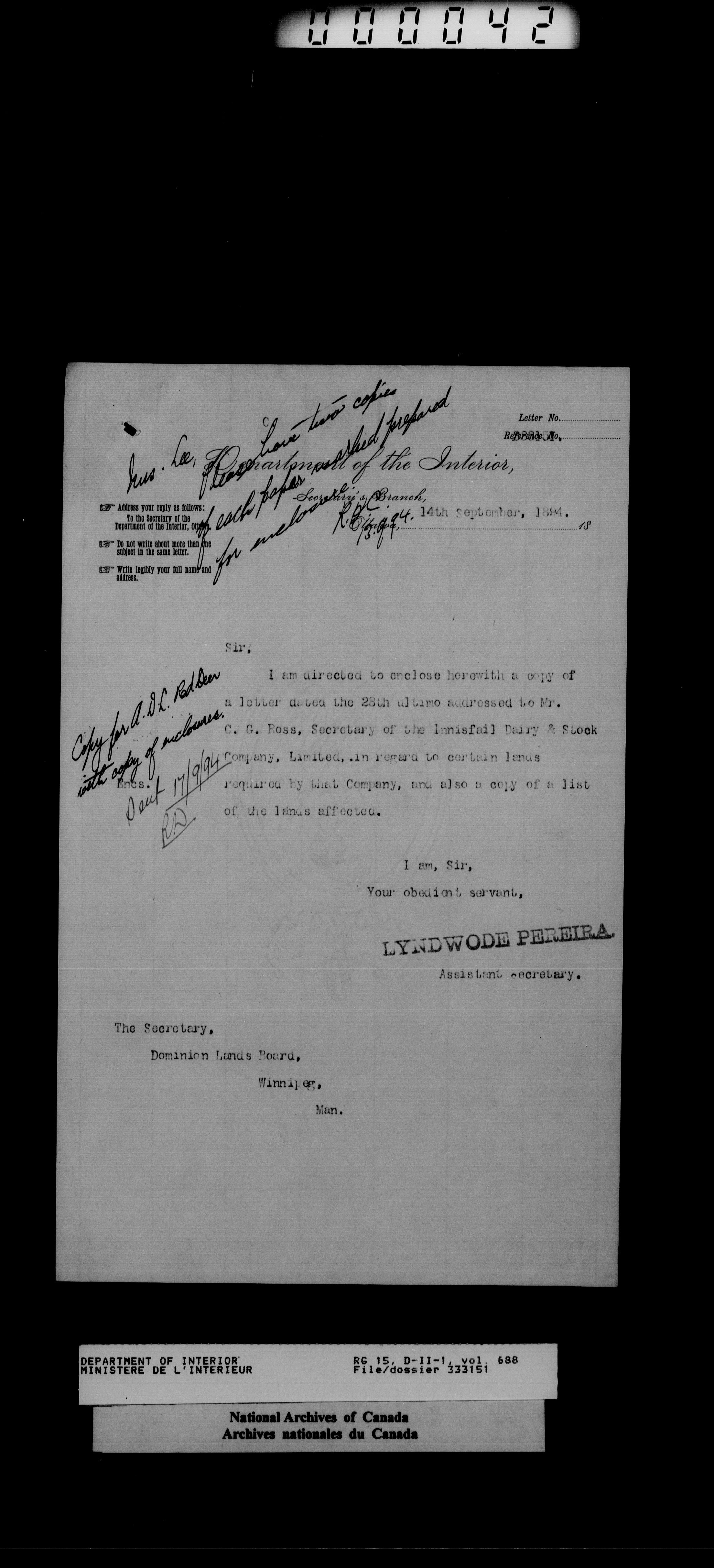 Central registry subject files created by the Dominion Lands Branch - 14436