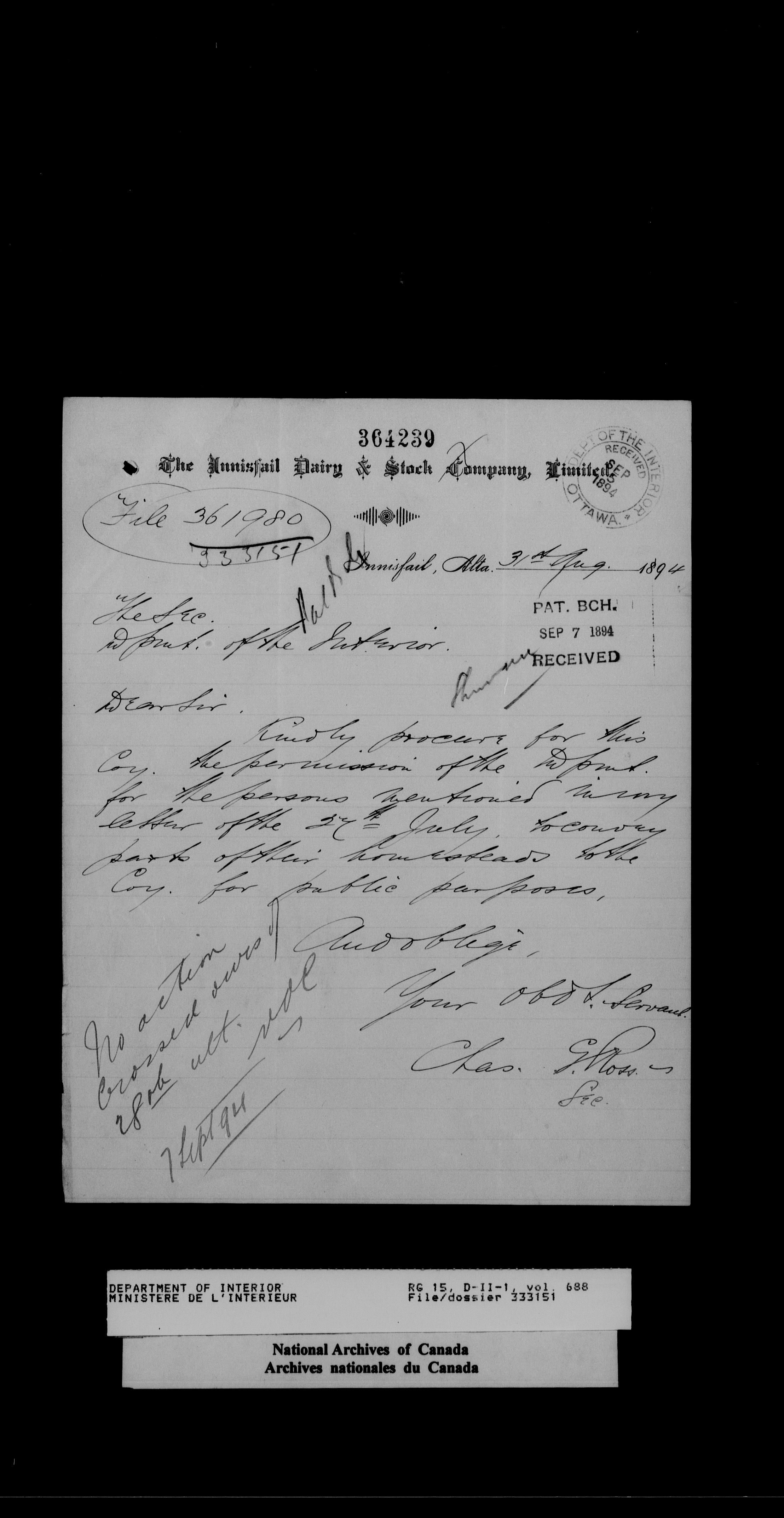 Central registry subject files created by the Dominion Lands Branch - 14436