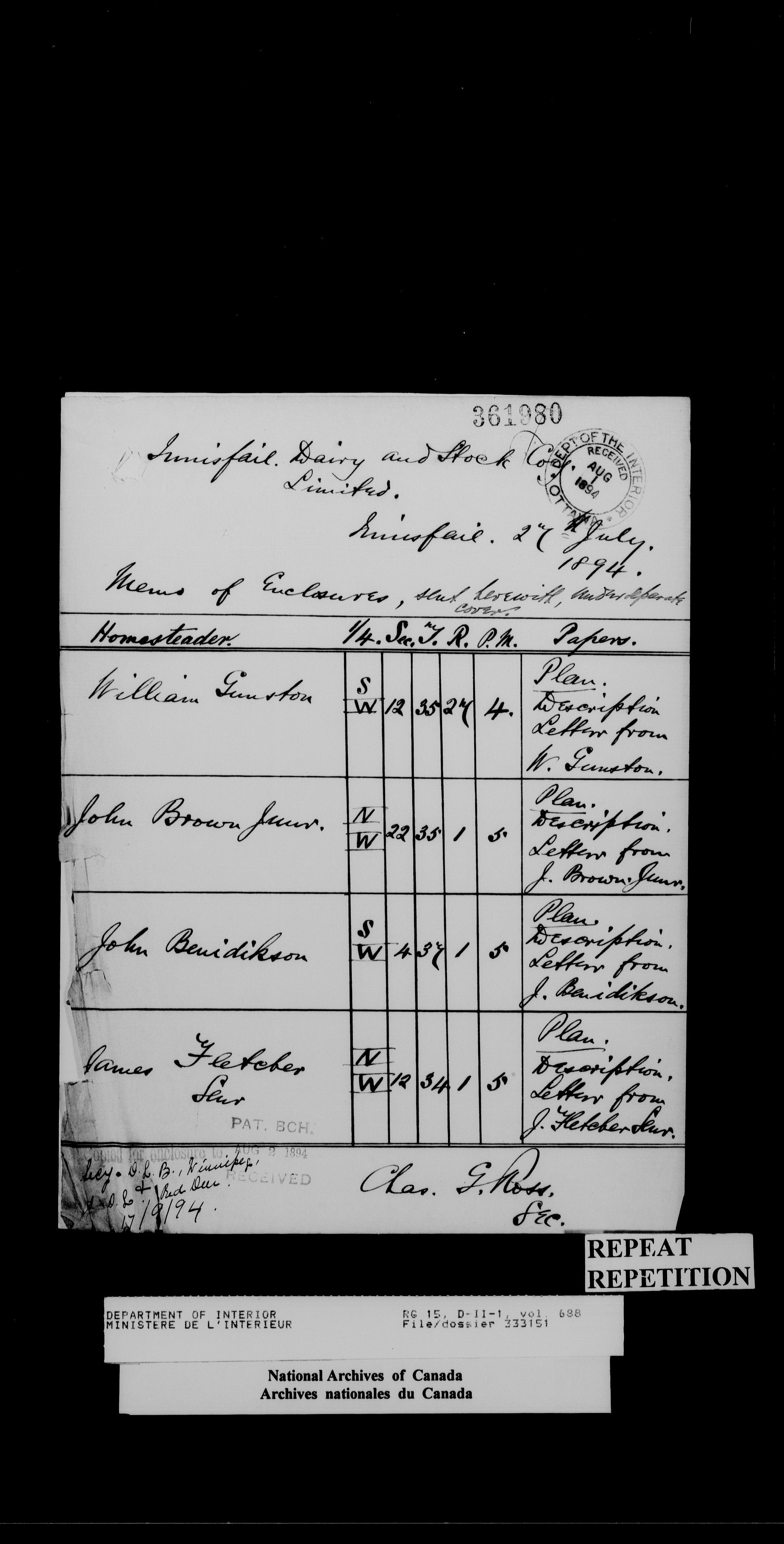 Central registry subject files created by the Dominion Lands Branch - 14436