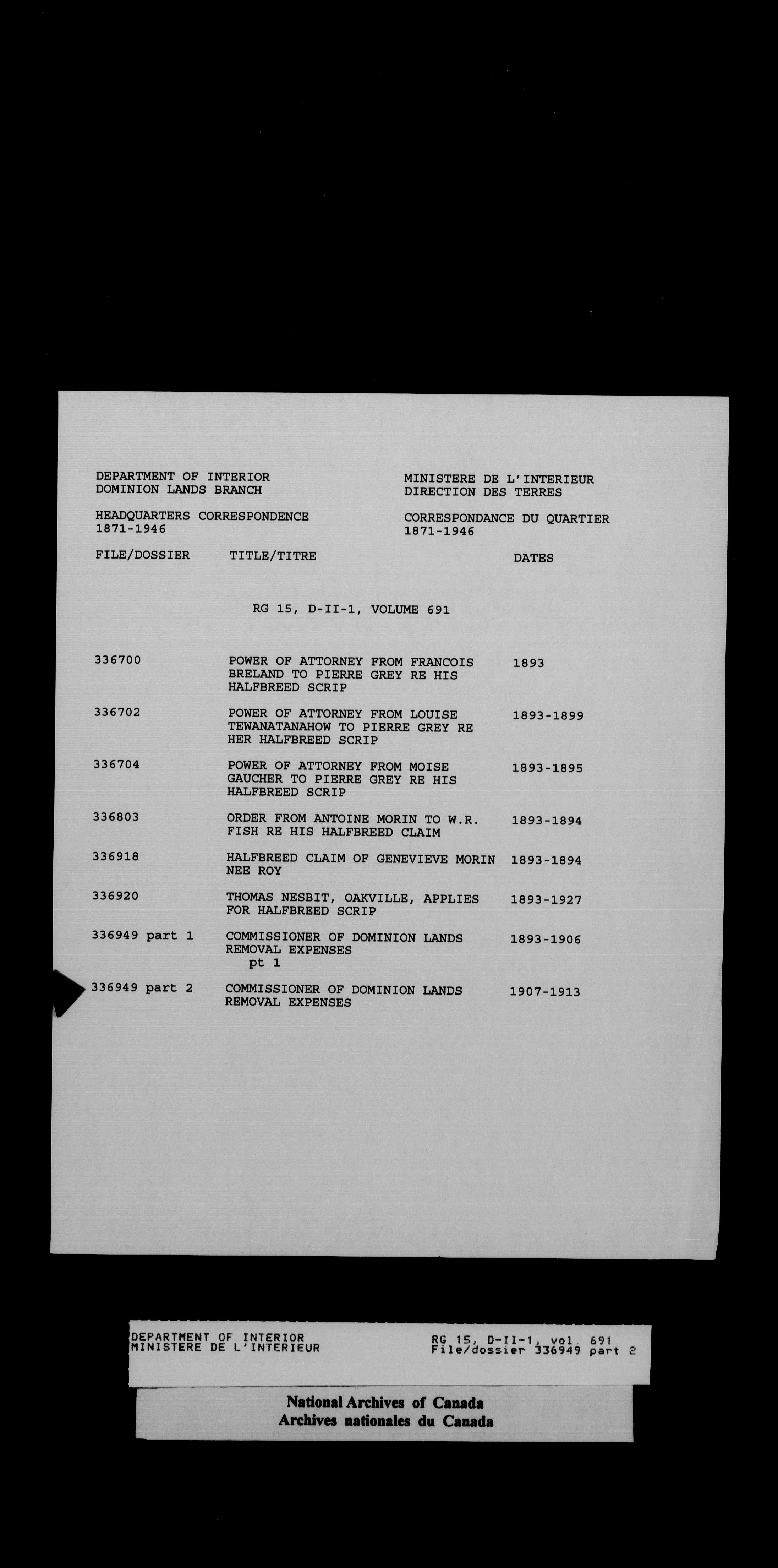 Central registry subject files created by the Dominion Lands Branch - 14437