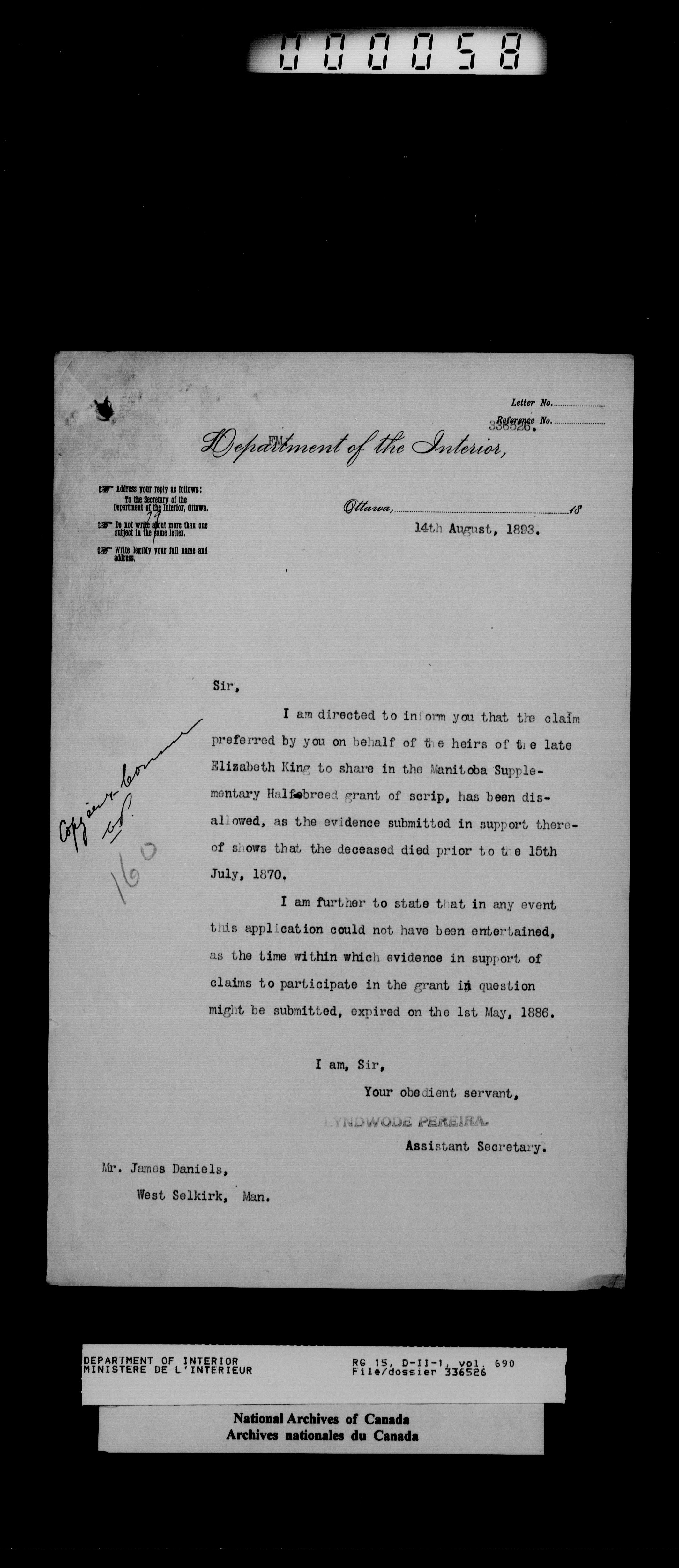 Central registry subject files created by the Dominion Lands Branch - 14437