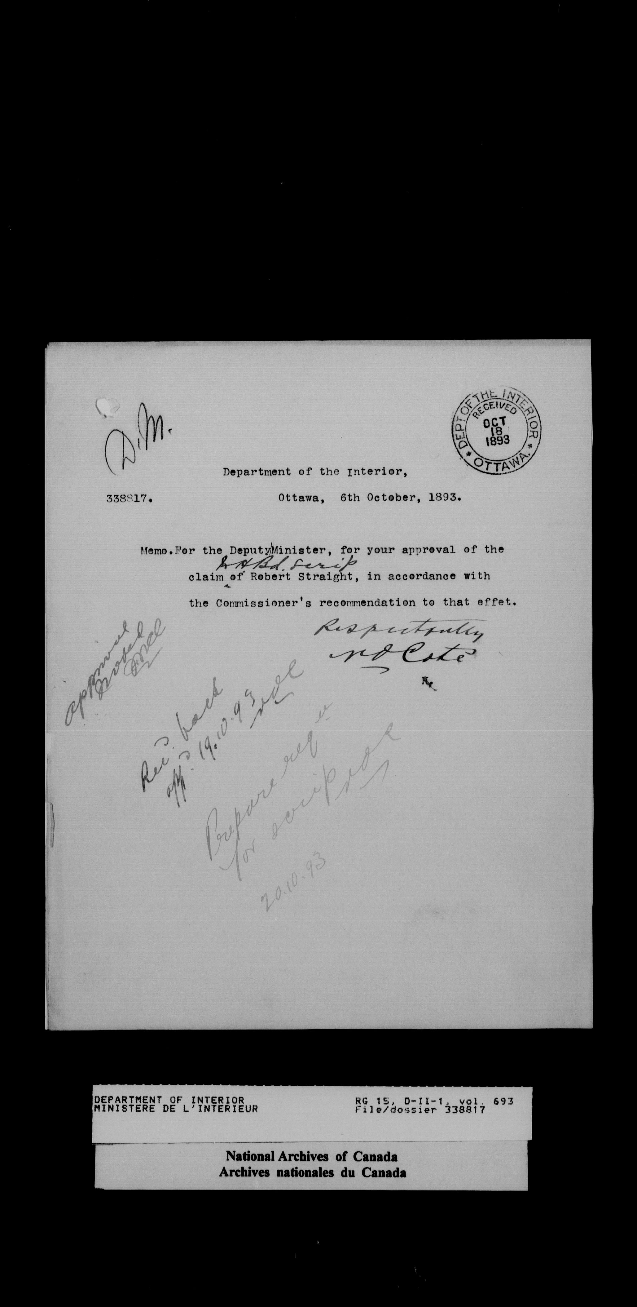 Central registry subject files created by the Dominion Lands Branch - 14439