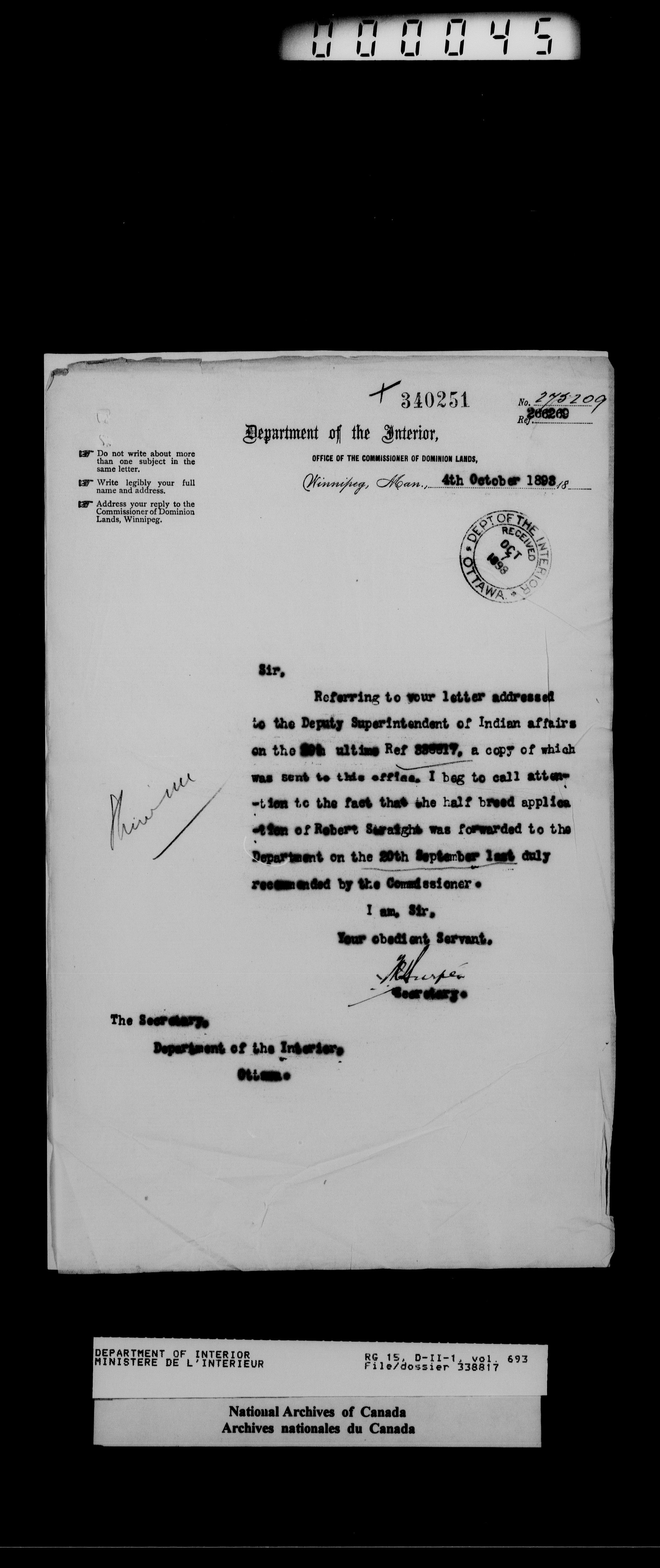 Central registry subject files created by the Dominion Lands Branch - 14439