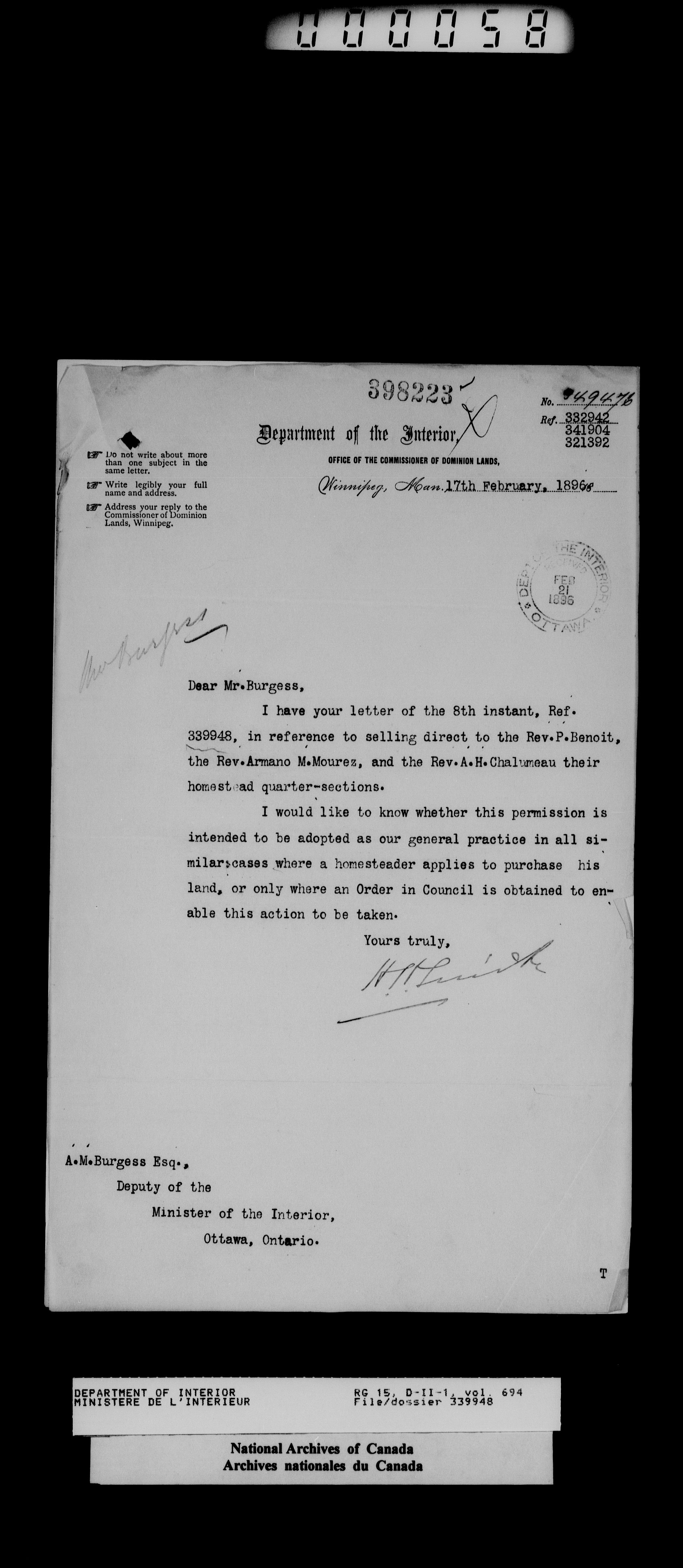 Central registry subject files created by the Dominion Lands Branch - 14440