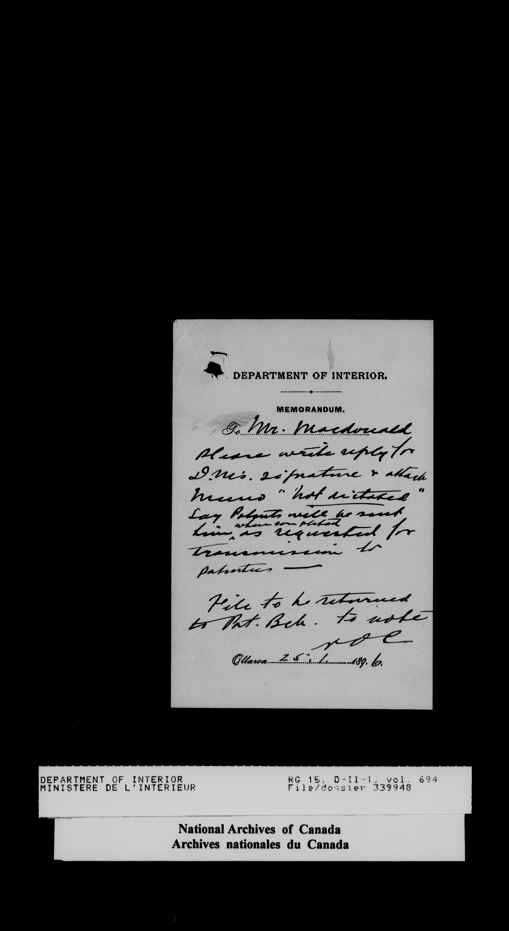 Central registry subject files created by the Dominion Lands Branch - 14440