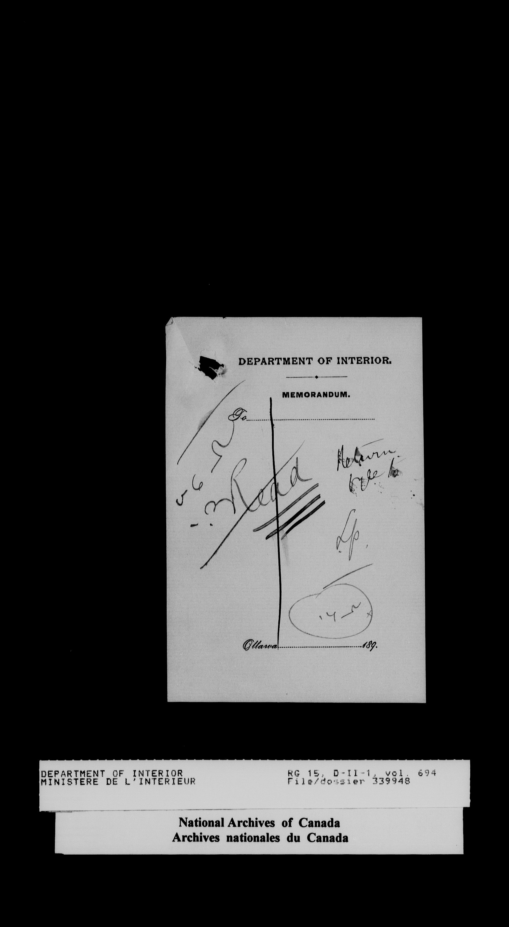 Central registry subject files created by the Dominion Lands Branch - 14440