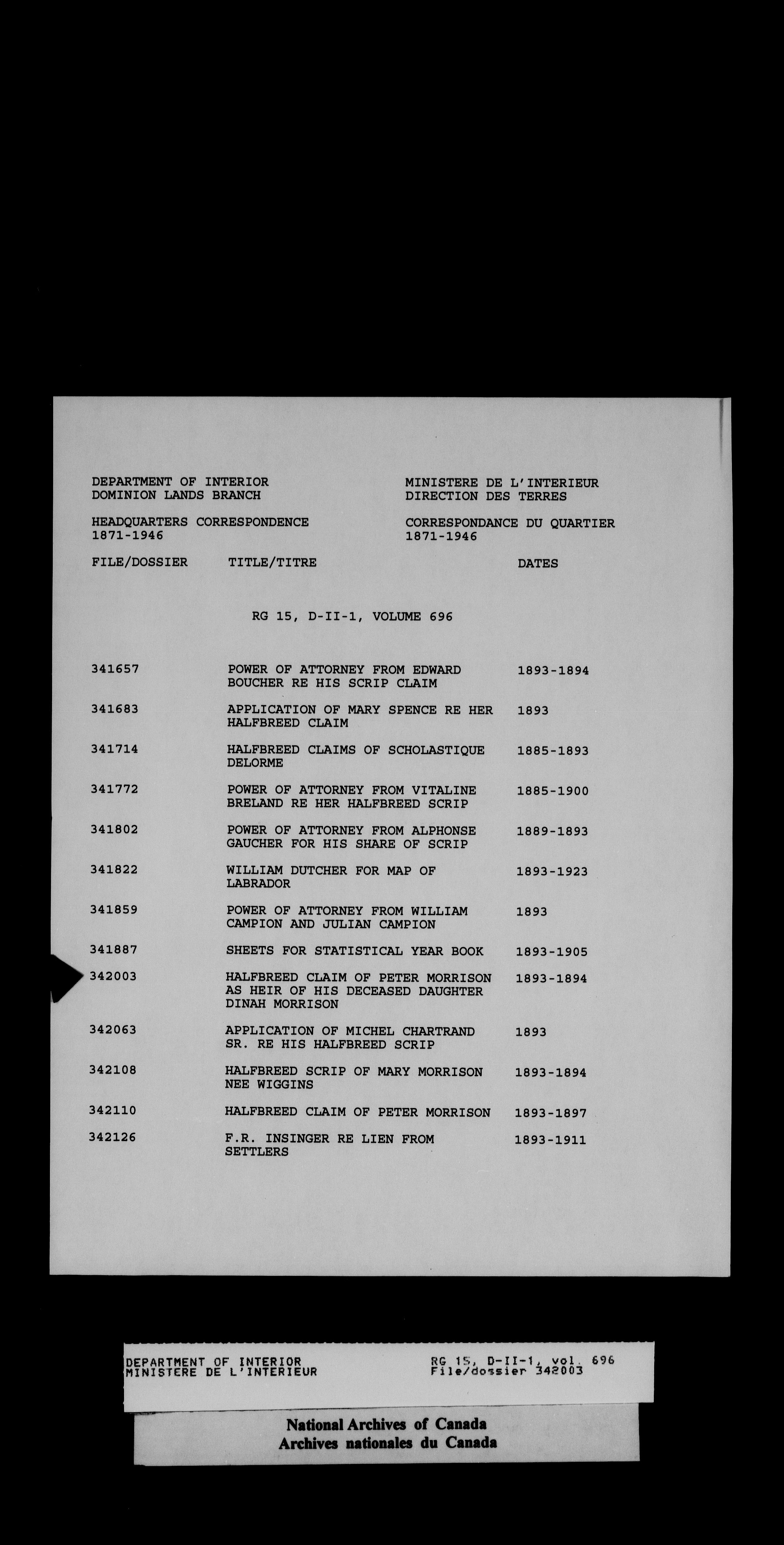 Central registry subject files created by the Dominion Lands Branch - 14442