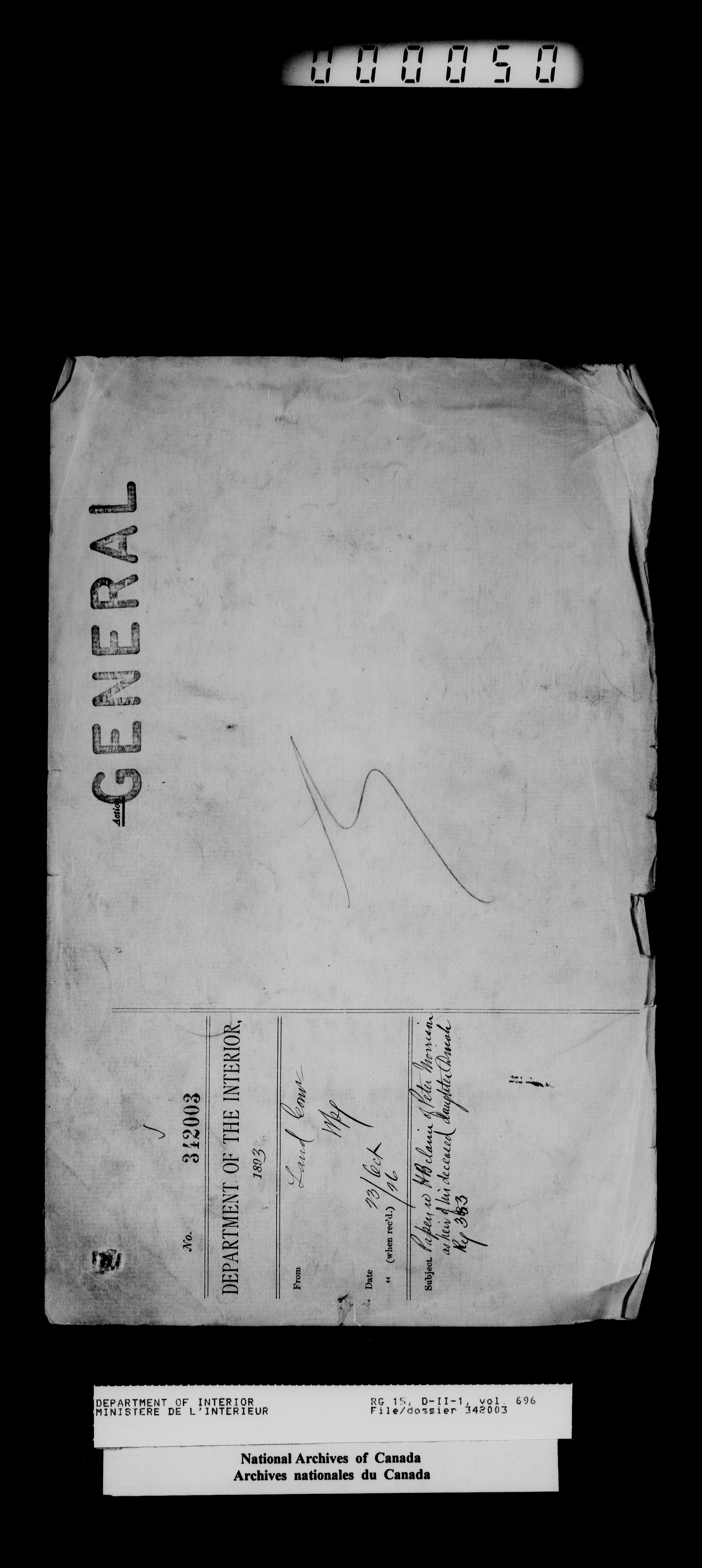 Central registry subject files created by the Dominion Lands Branch - 14442