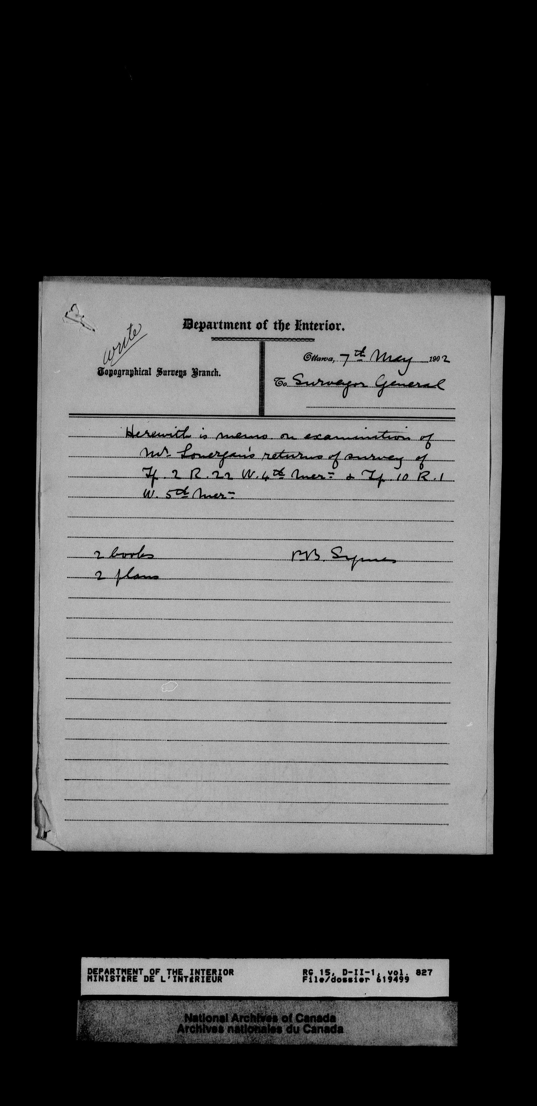 Dominion Lands Branch : Correspondence files : T-14454
