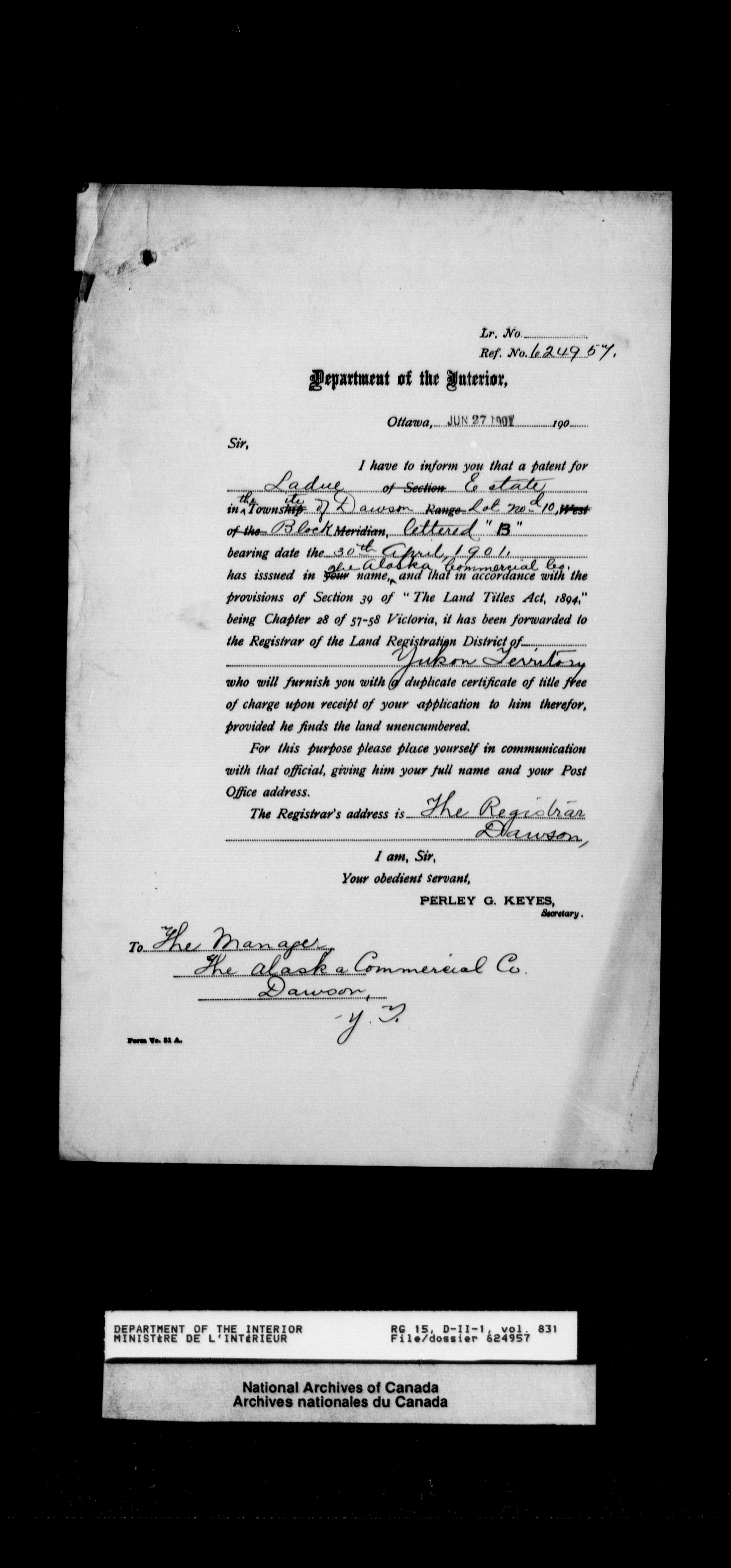 Dominion Lands Branch - Correspondence Files - 14458