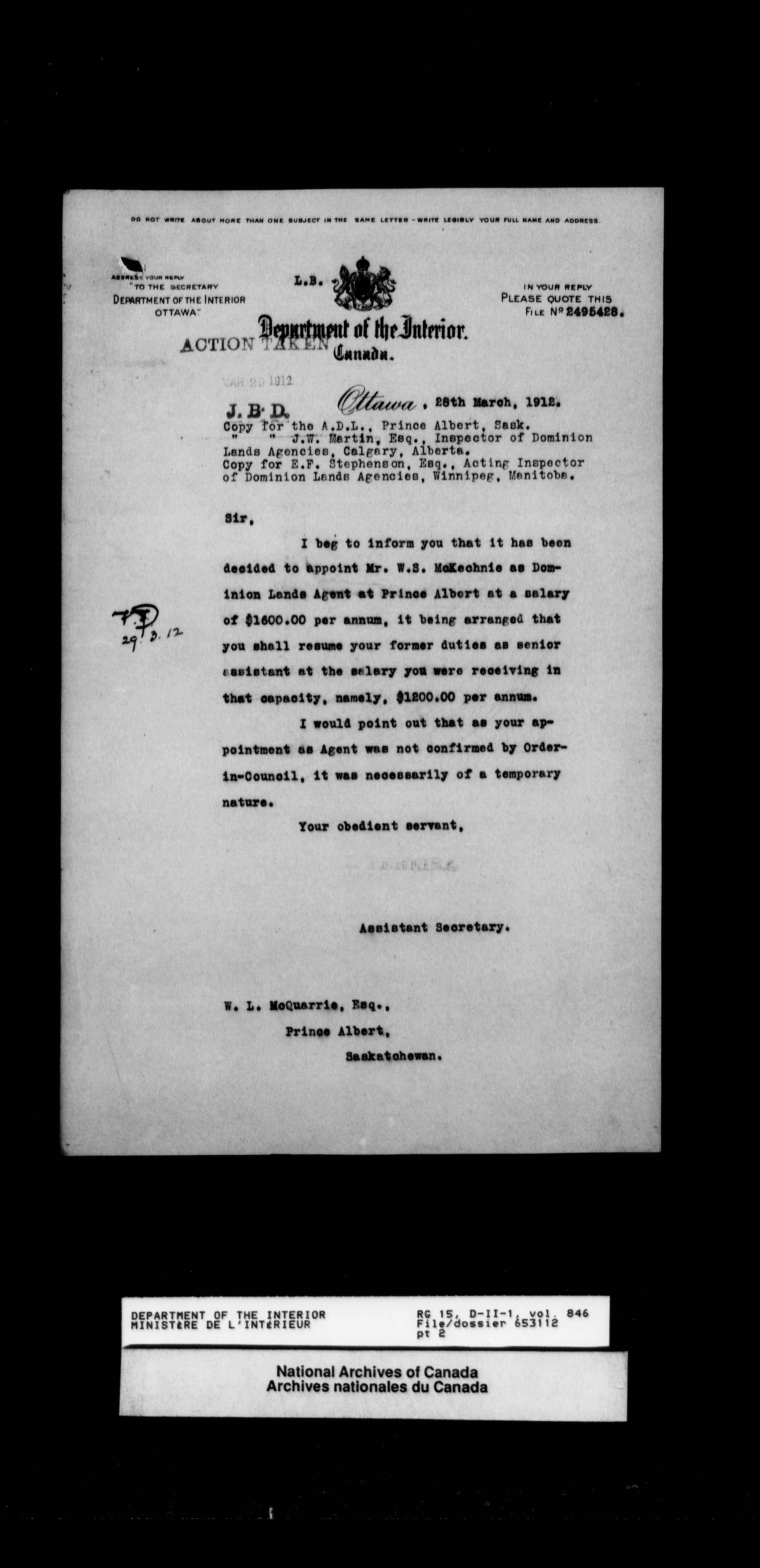 Dominion Lands Branch - Correspondence Files - 14469