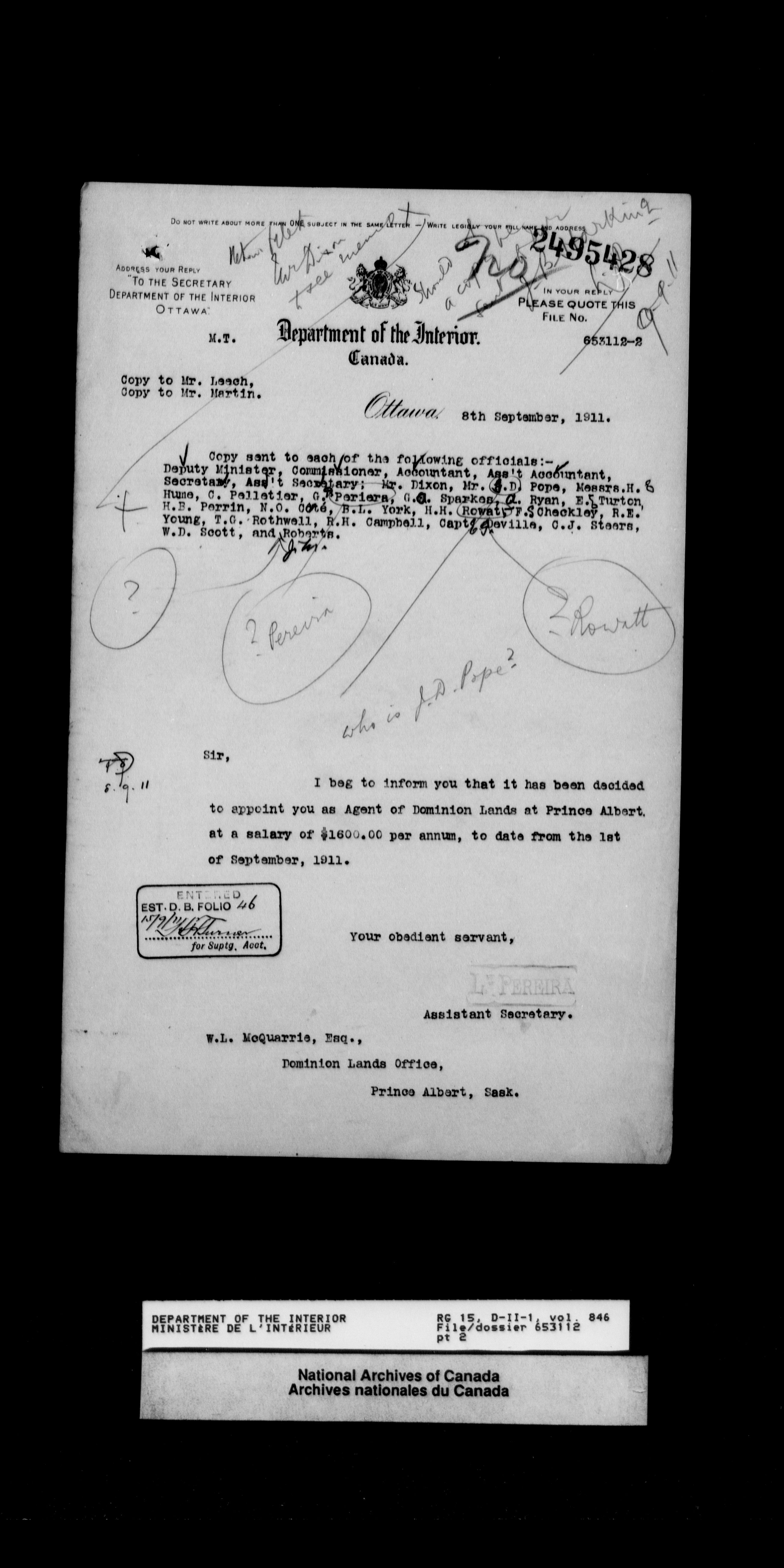 Dominion Lands Branch - Correspondence Files - 14469