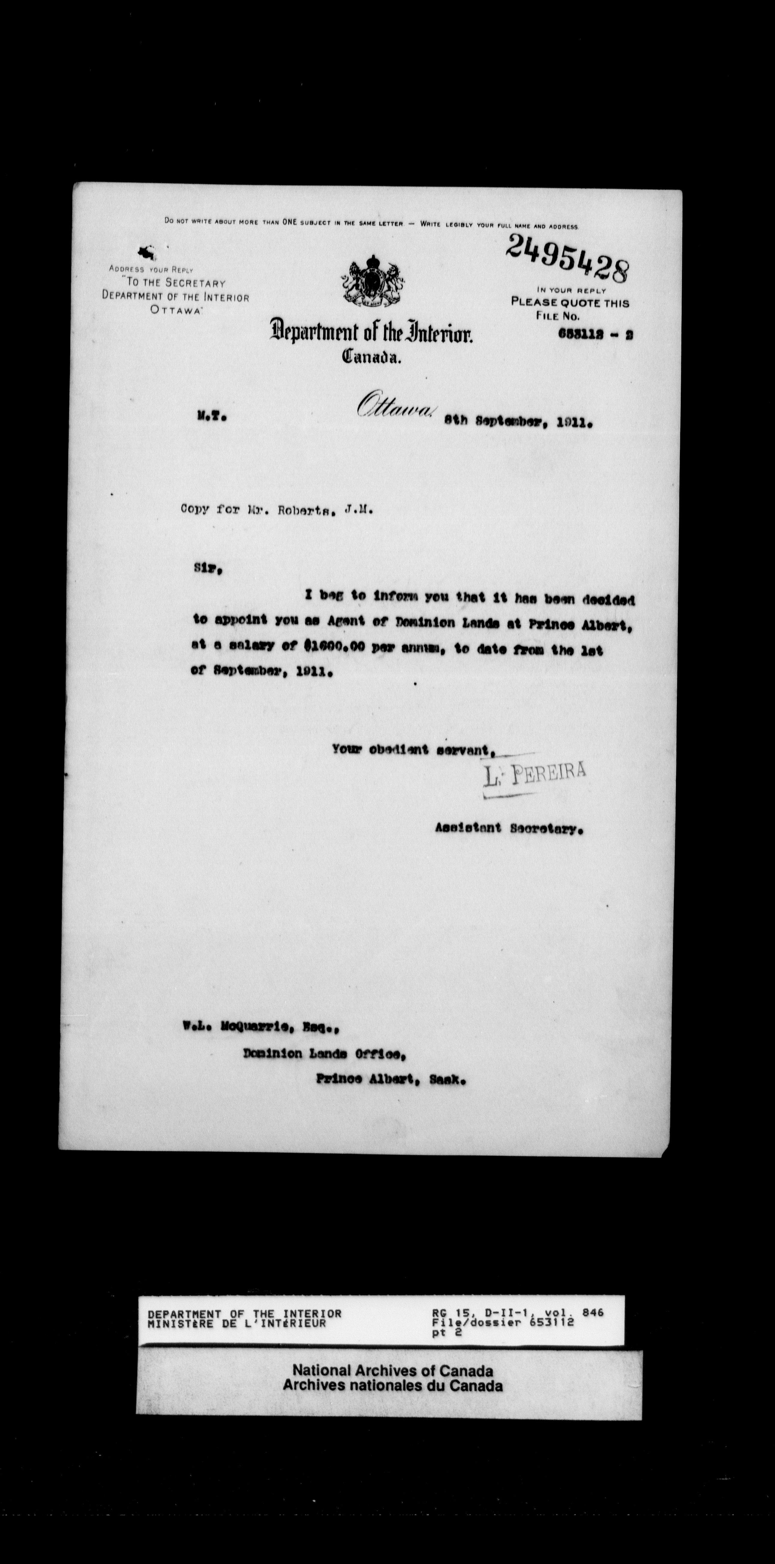 Dominion Lands Branch - Correspondence Files - 14469