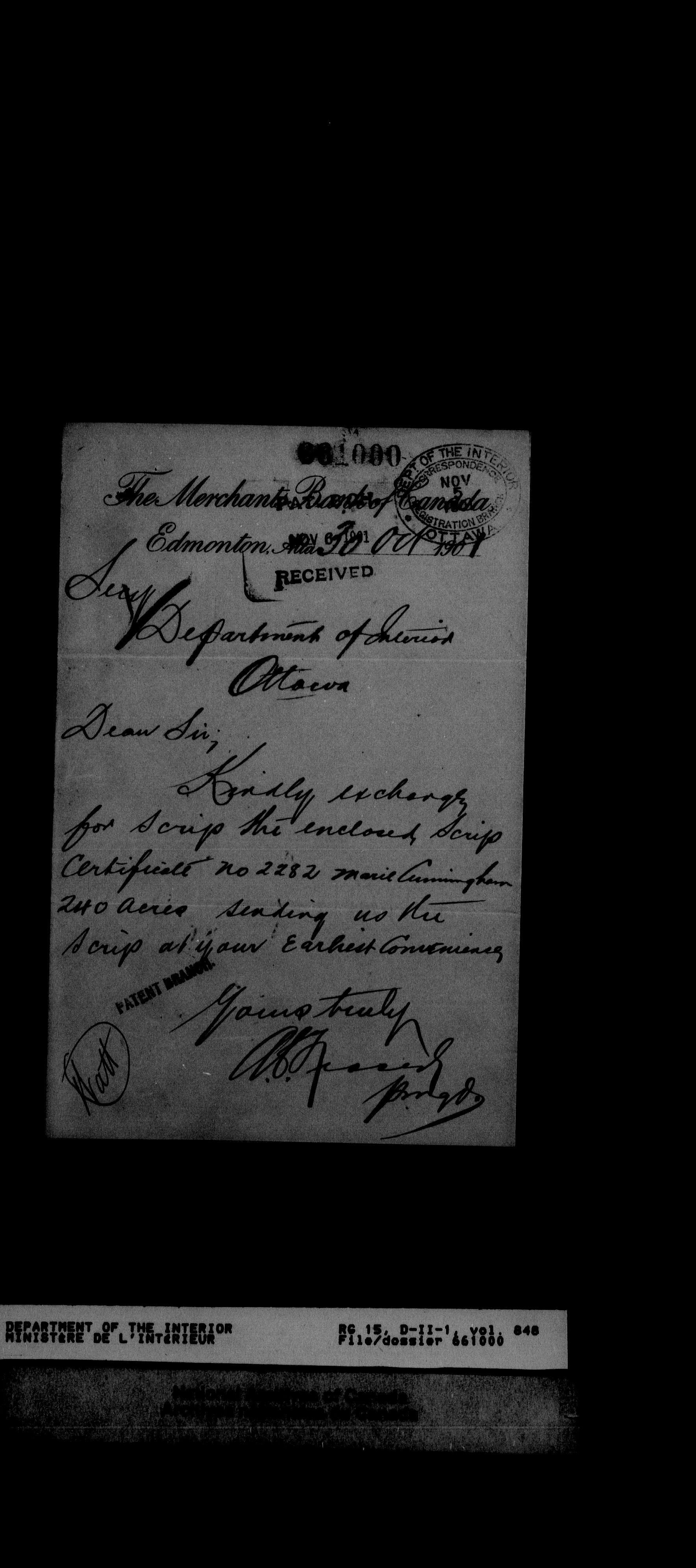 Dominion Lands Branch - Correspondence Files - 14470