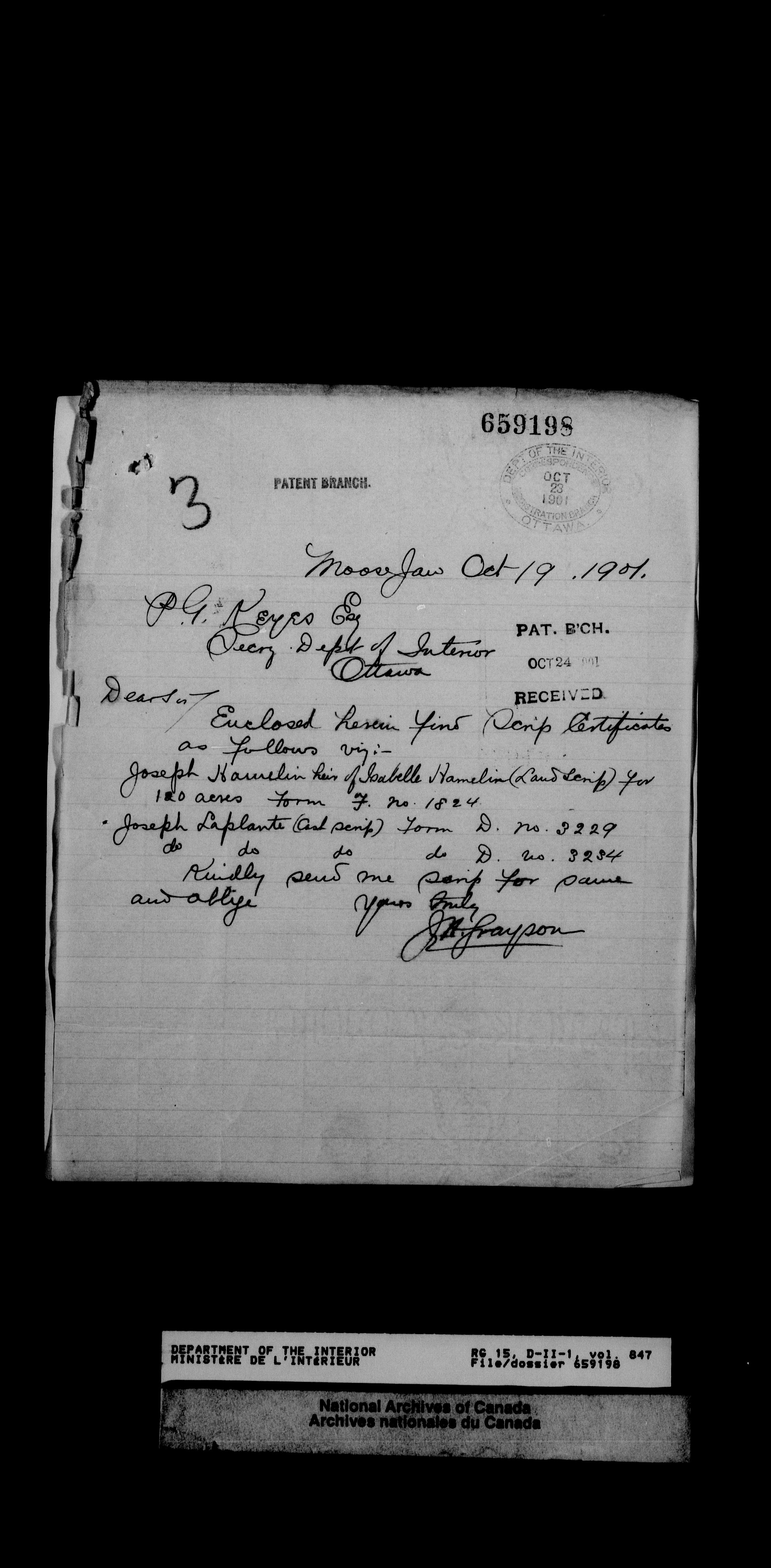 Dominion Lands Branch - Correspondence Files - 14470