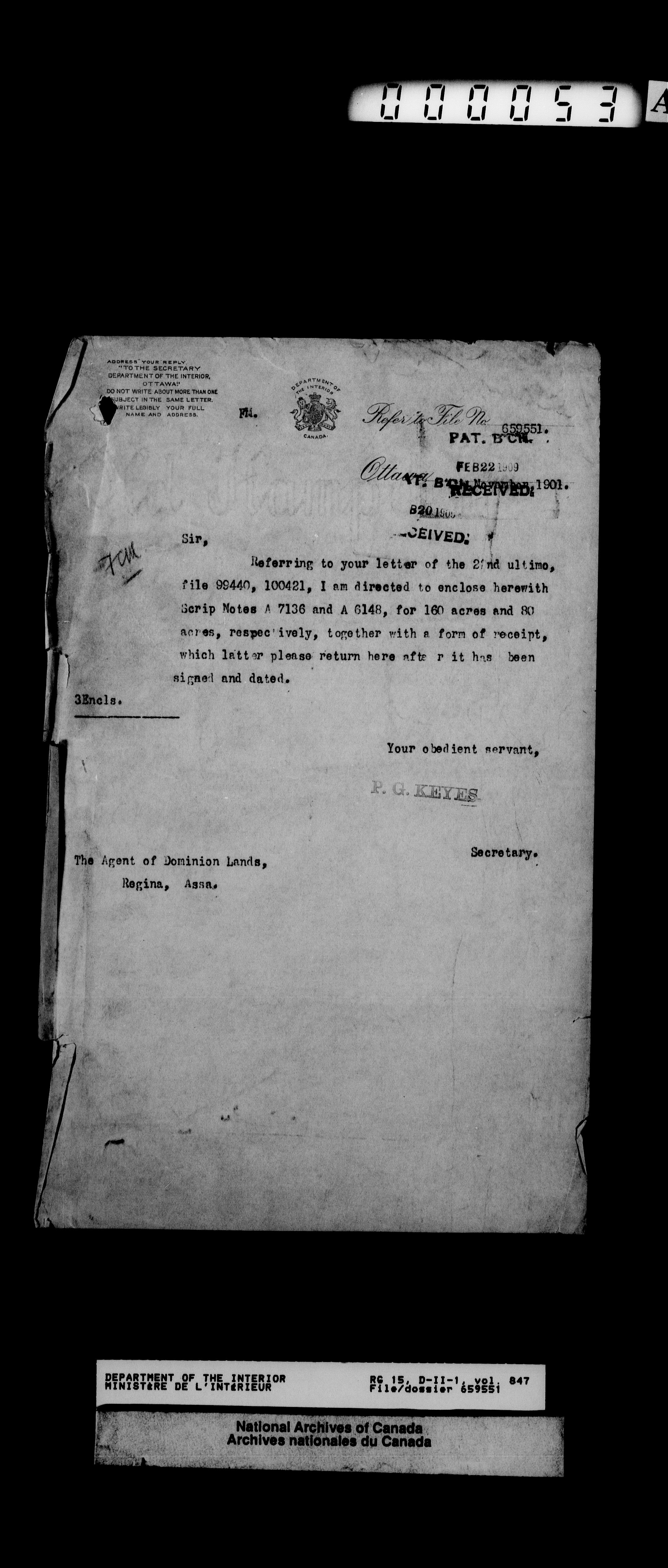 Dominion Lands Branch - Correspondence Files - 14470