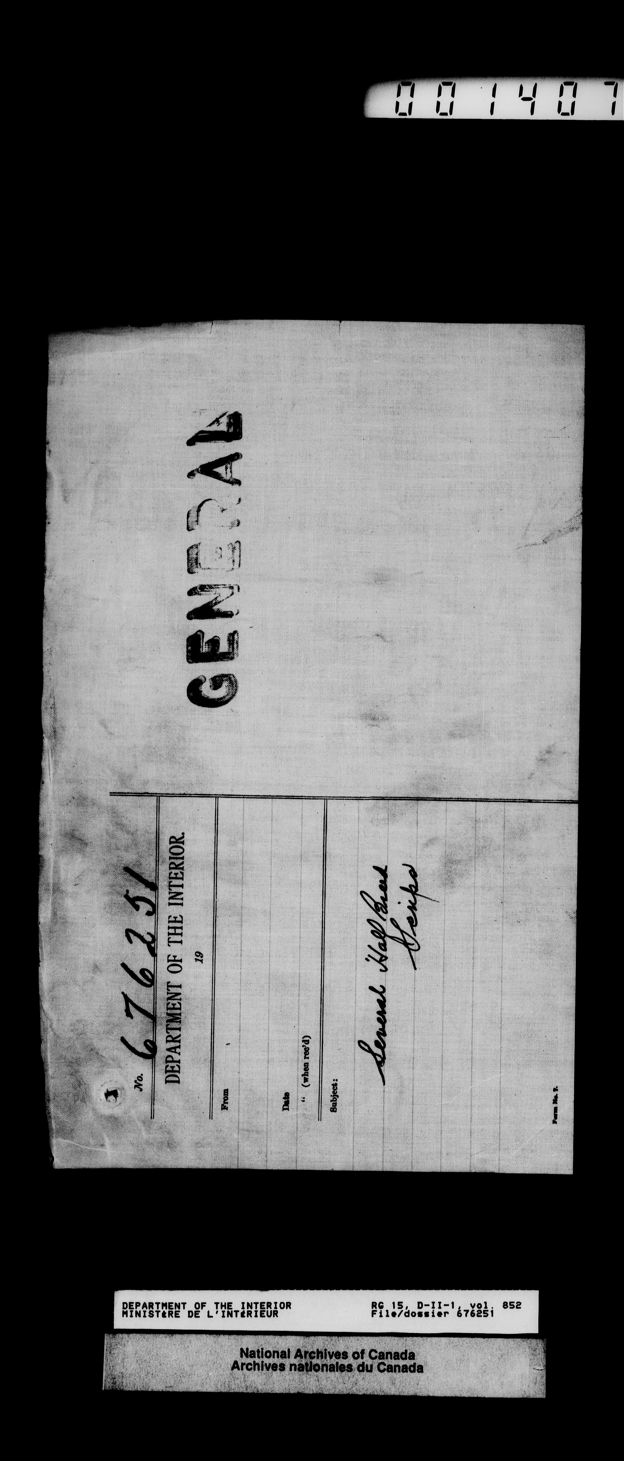 Dominion Lands Branch - Correspondence Files - 14472