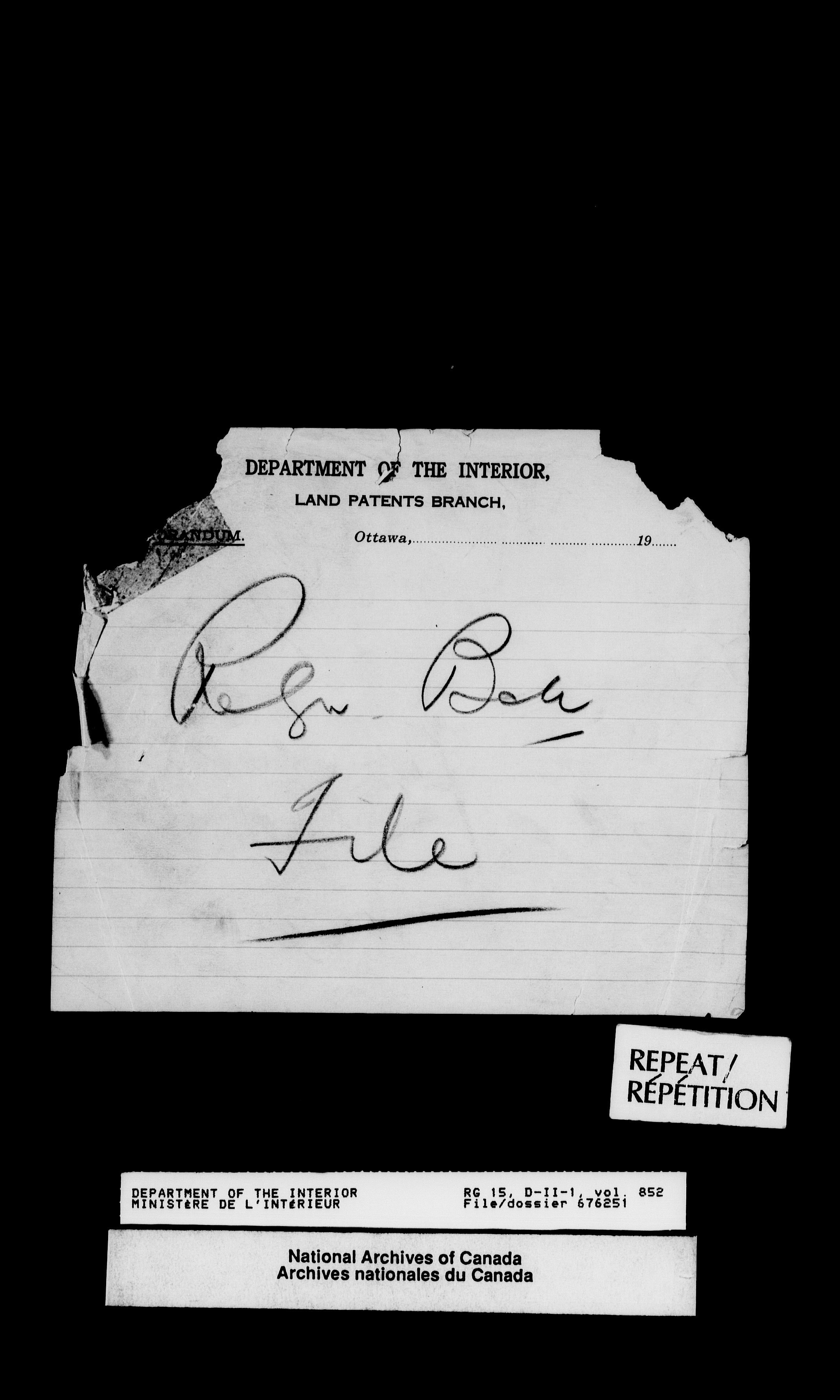 Dominion Lands Branch - Correspondence Files - 14472